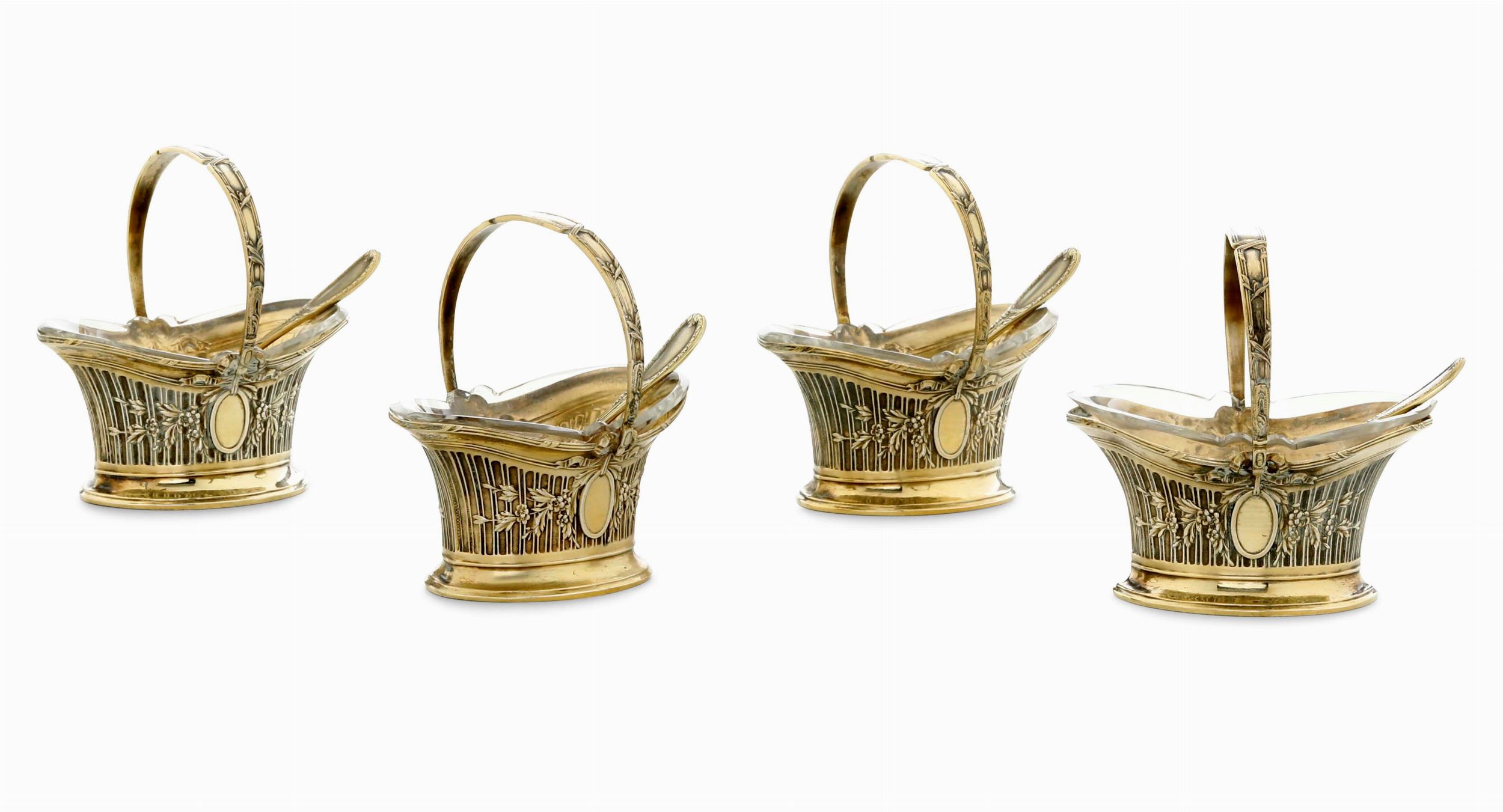 Quattro saliere con cucchiaini. Argenteria tedesca del XX secolo