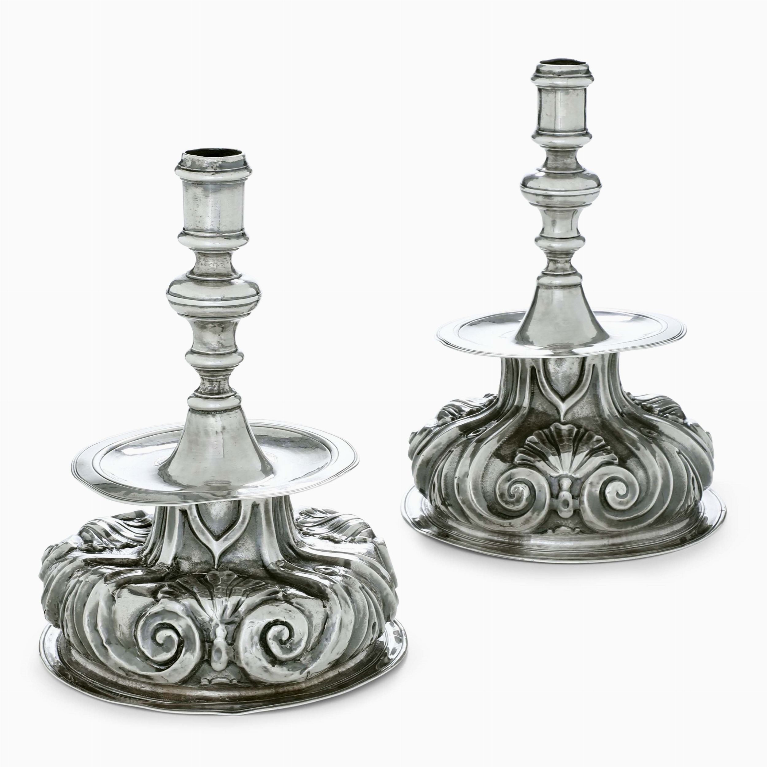 Rara coppia di candelieri. Genova, marchio della 'Torretta' per l'anno (1)732