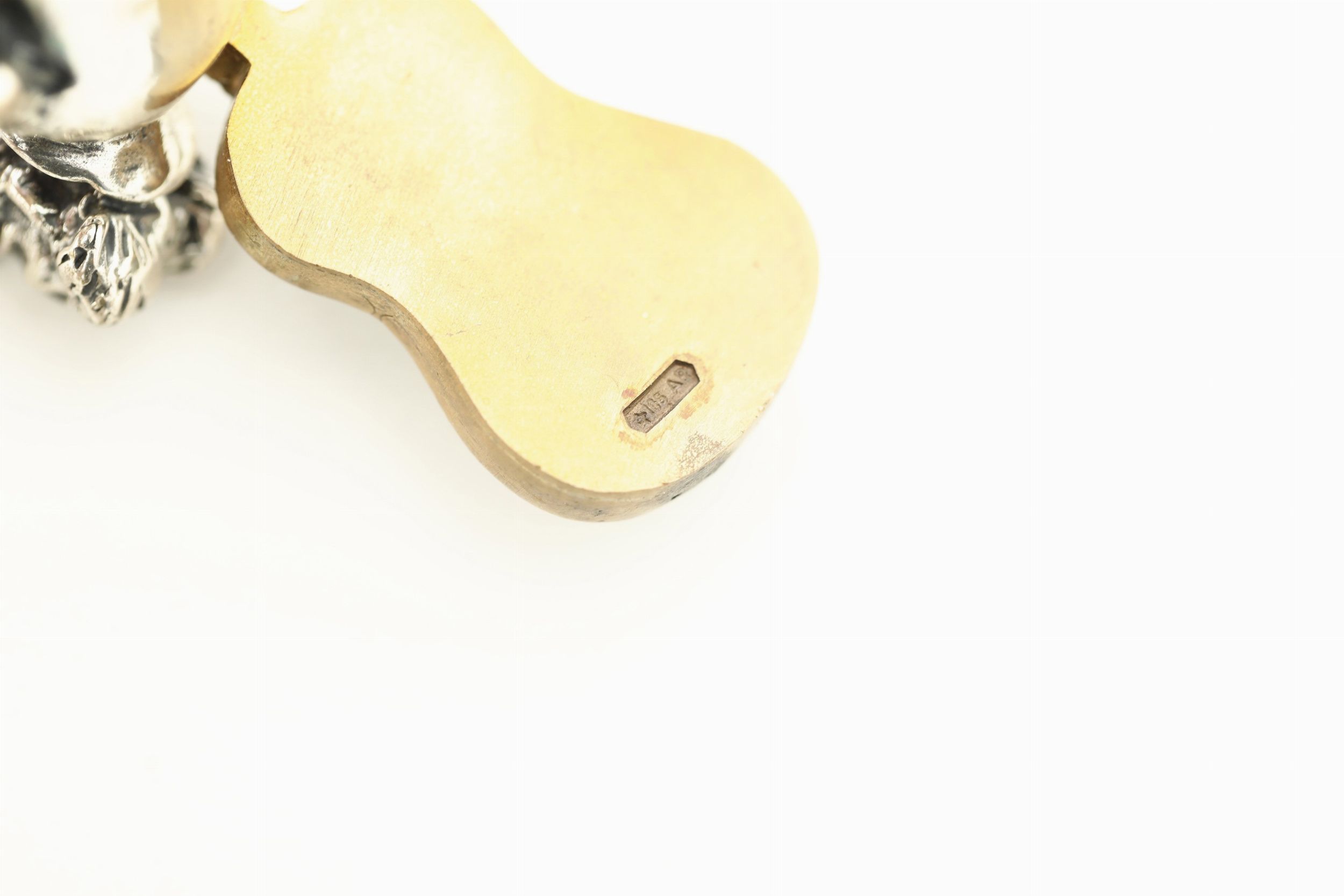 Sei sculturine di musici in argento, vermeille e bronzo. Firmati Angini. Punzone [..]