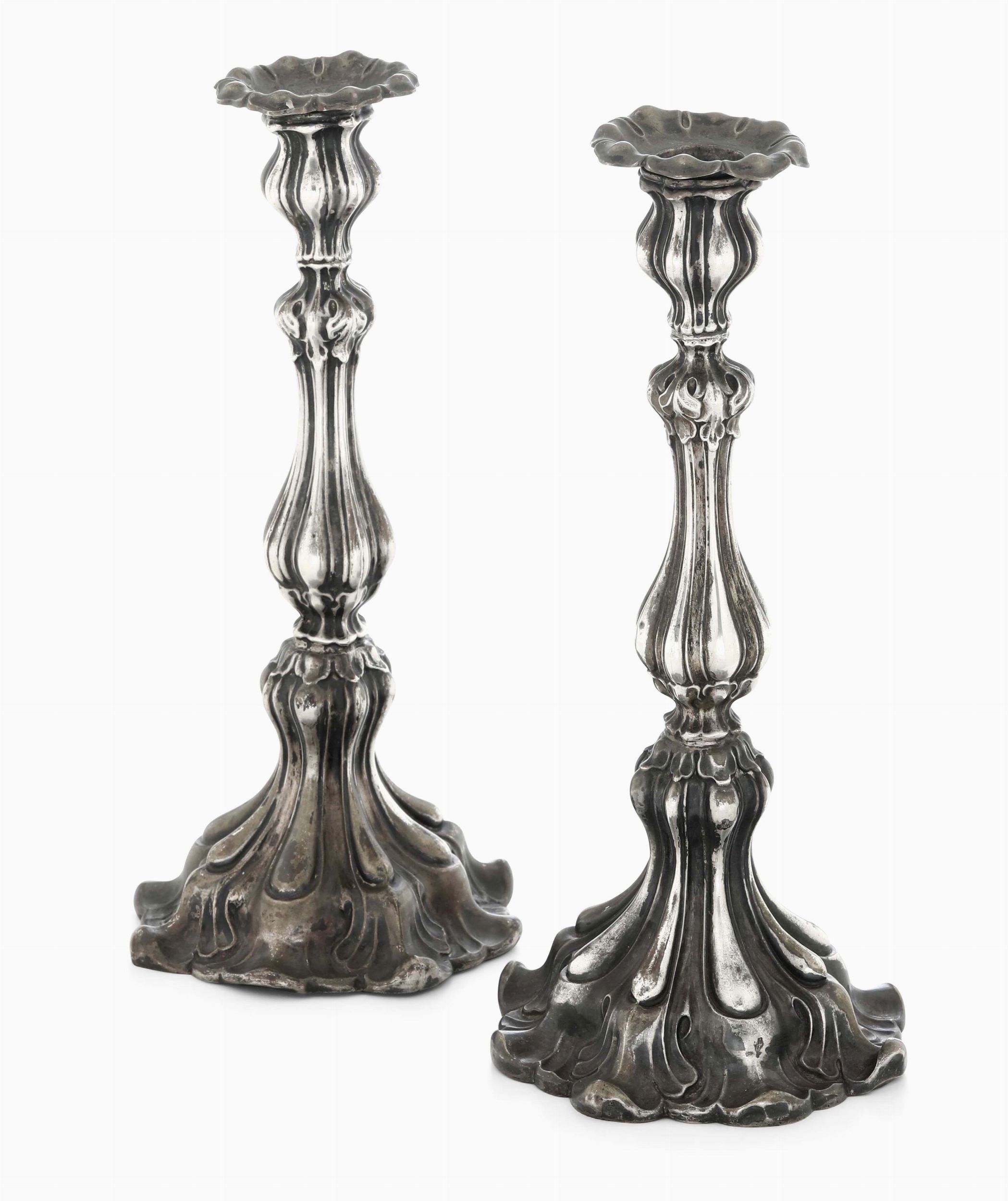 Coppia di candelieri. Regno di Sardegna, Novara o Vercelli, XIX secolo. Argentiere [..]