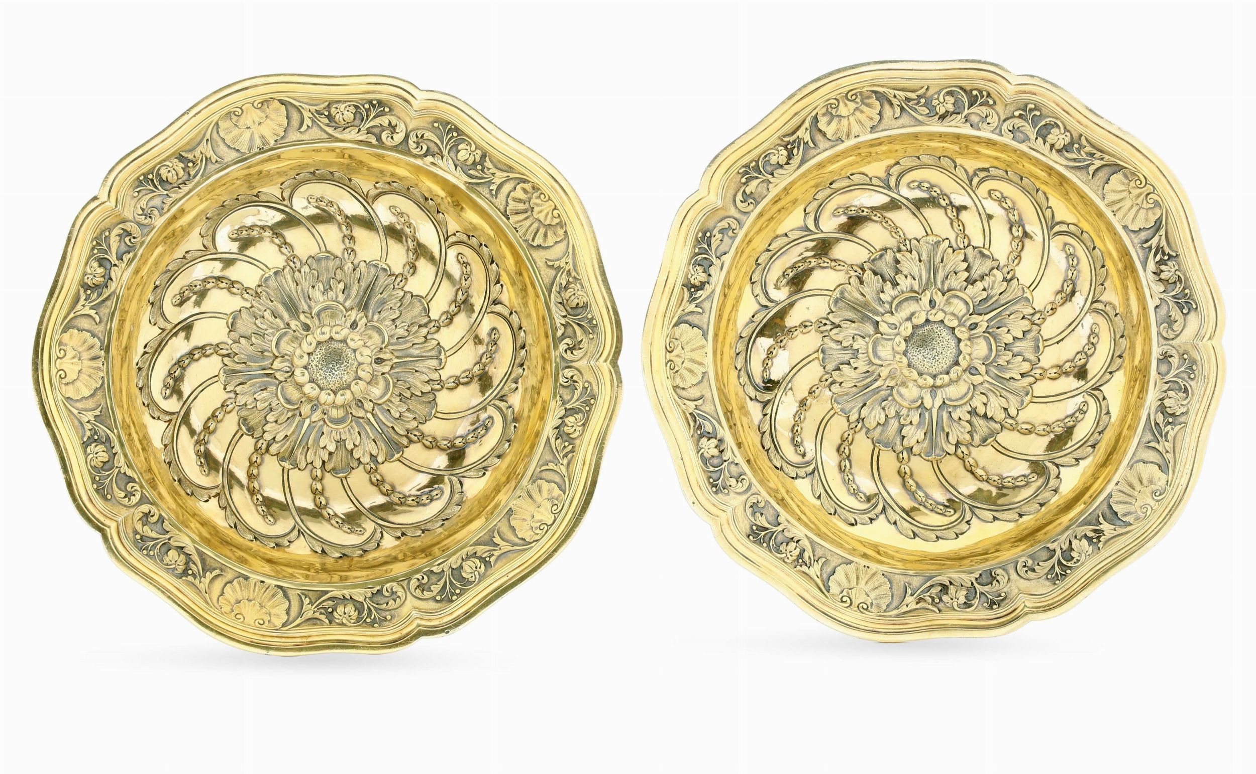 Coppia di piatti vermeille. Parigi, ultimo ventennio del XVIII secolo, marchi di [..]