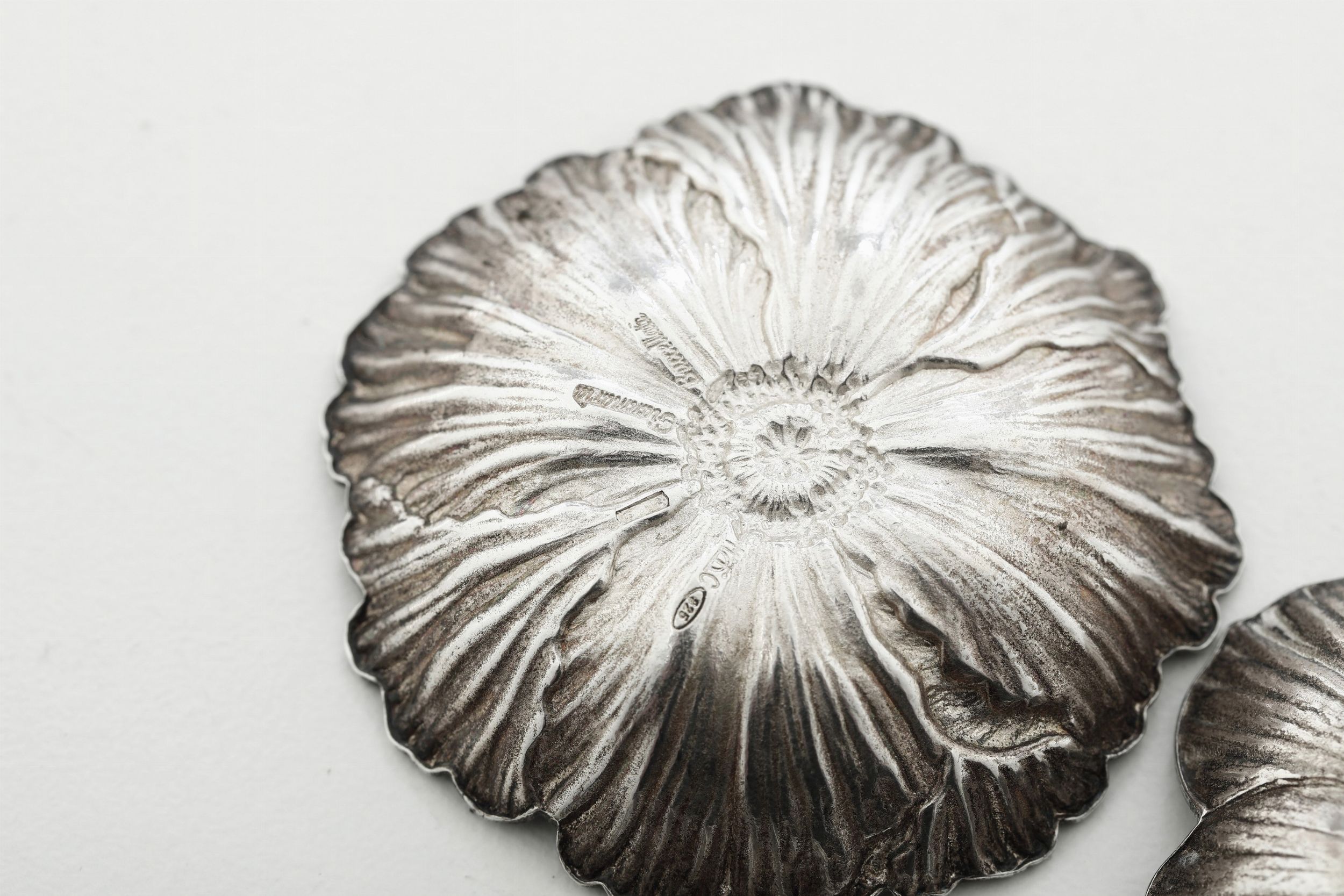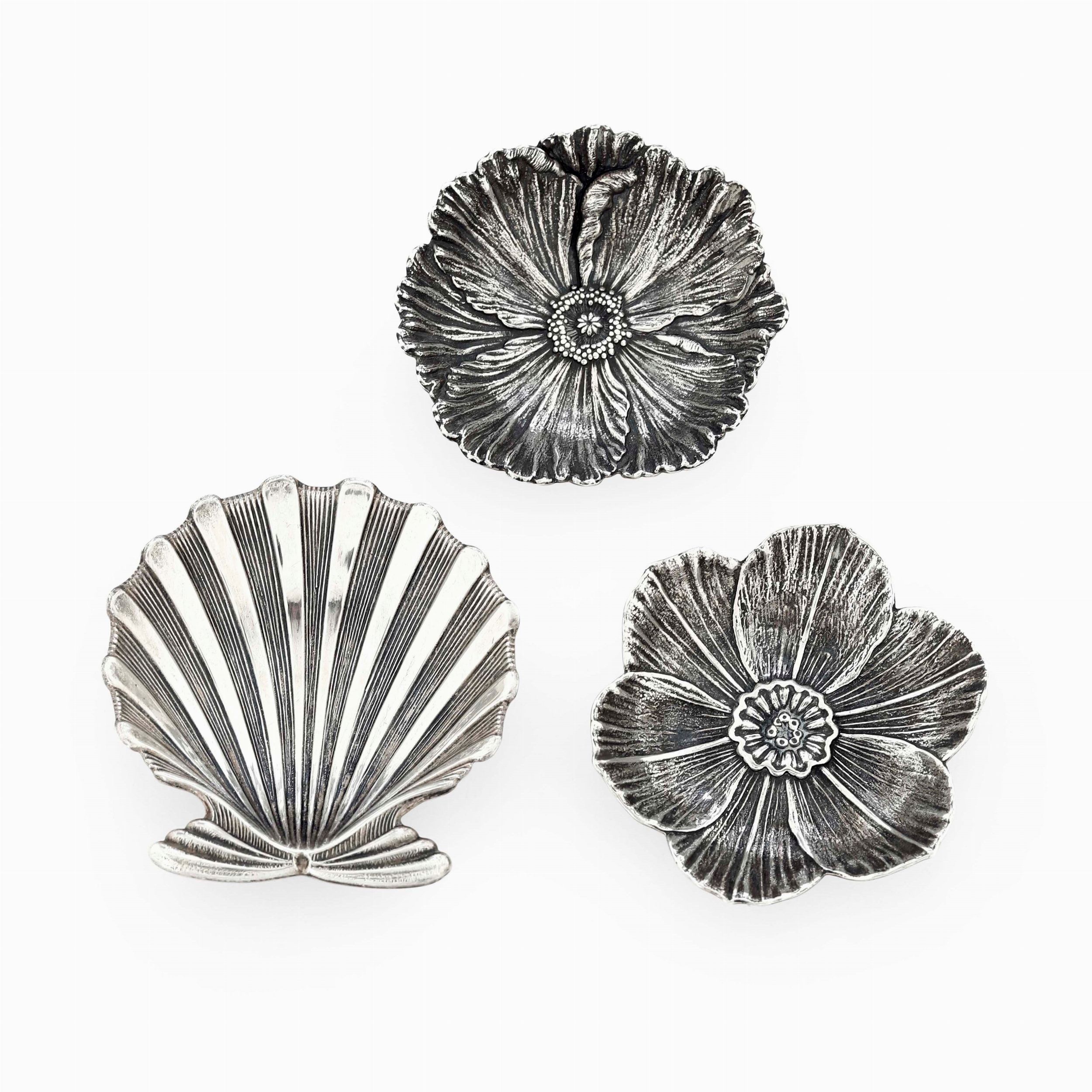 Due segnaposto a fiore e uno a conchiglia. Maison Gianmaria Buccellati. Argentiere [..]