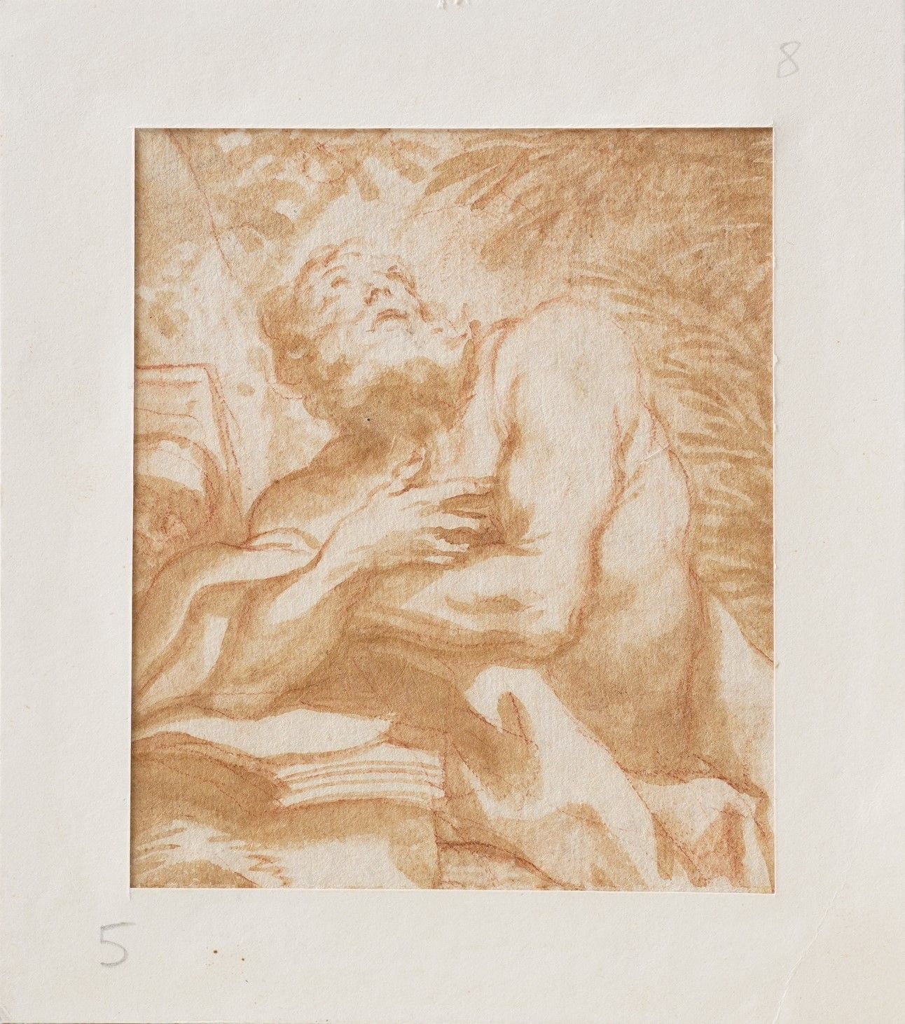 matita rossa e acquerello bruno su carta, Largh. 100 - Alt. 120 mm