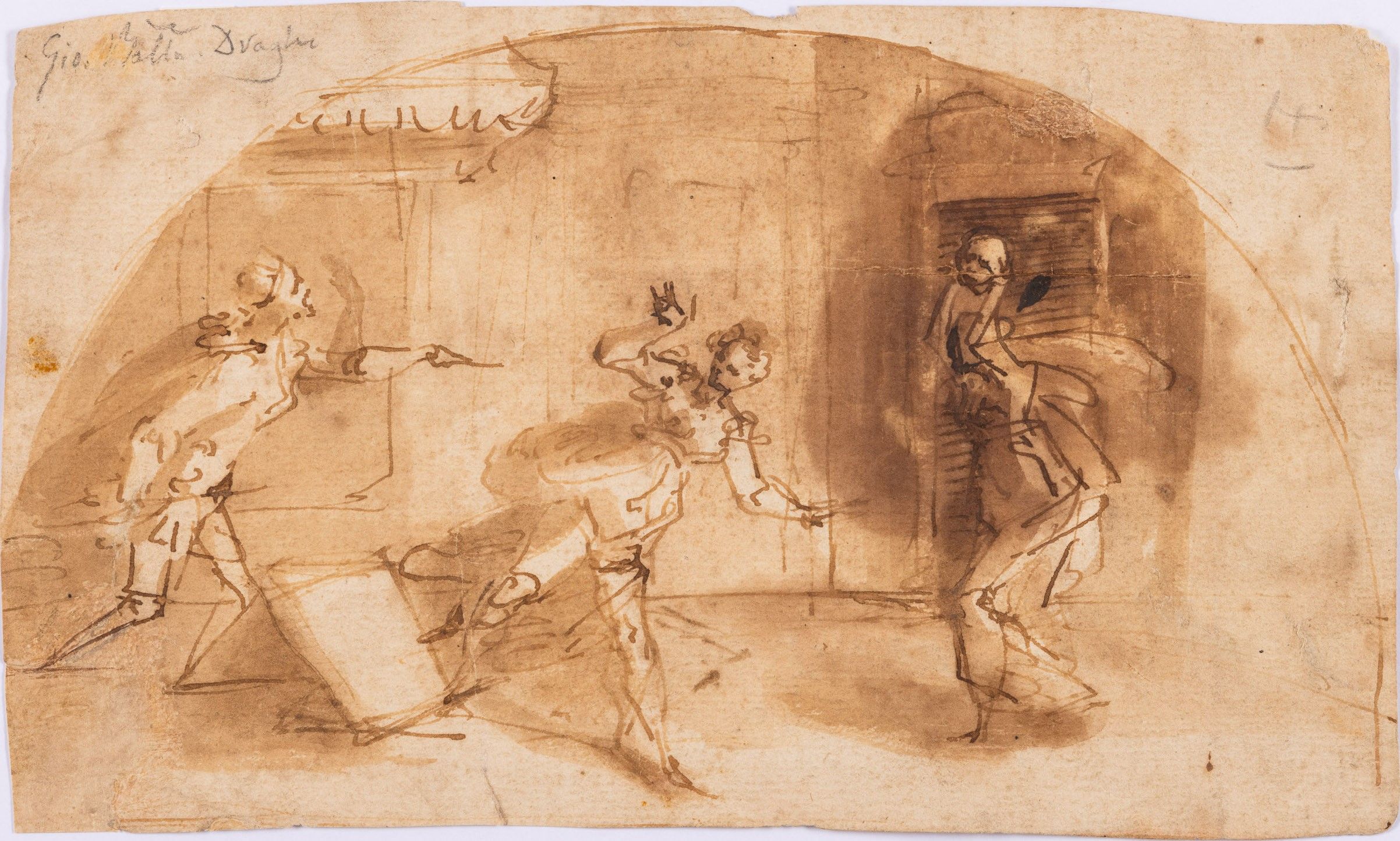 penna, inchiostro bruno e acquerello su carta, Largh. 210 - Alt. 120 mm