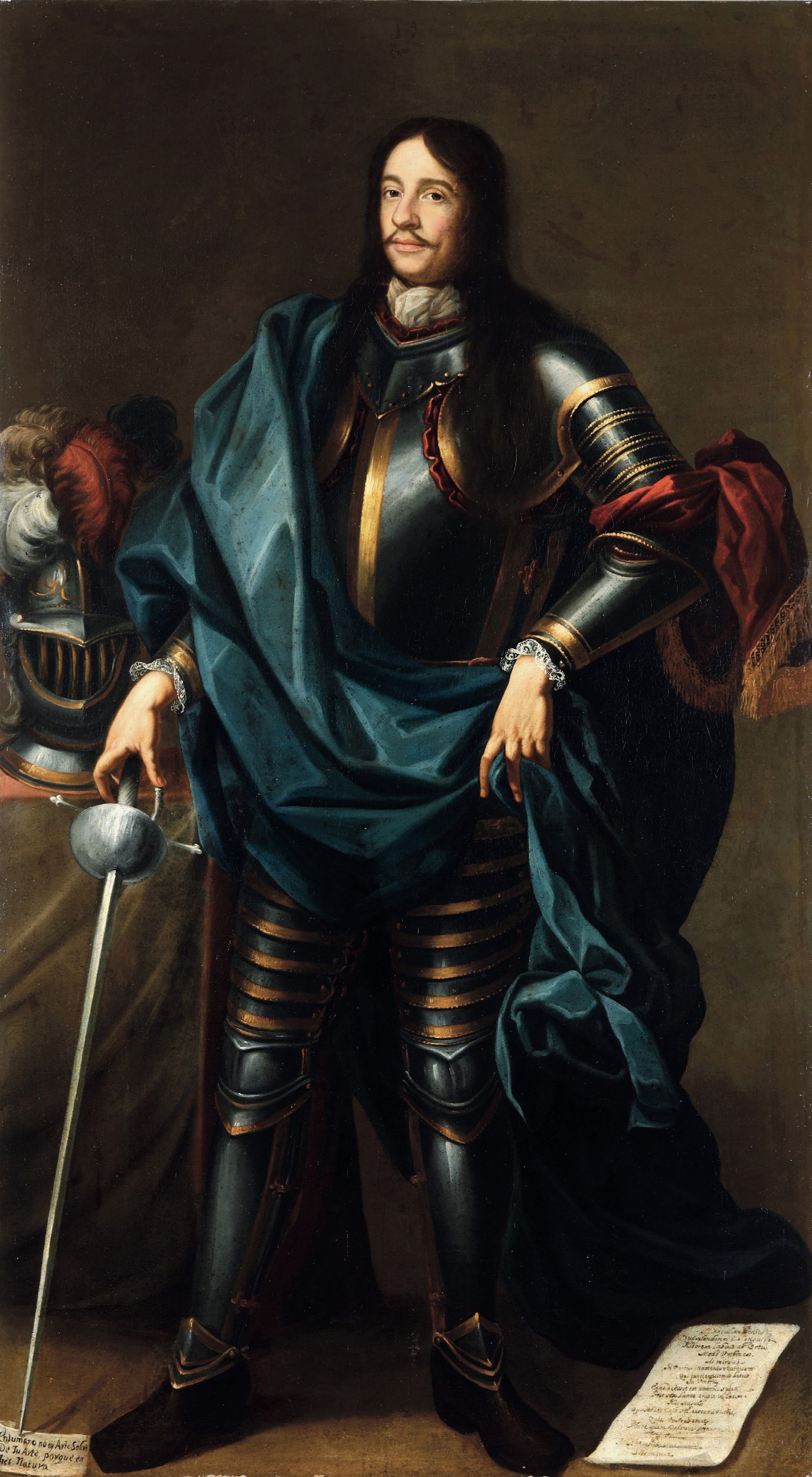Scuola lombarda del XVII secolo Ritratto a figura intera di gentiluomo in armatura [..]