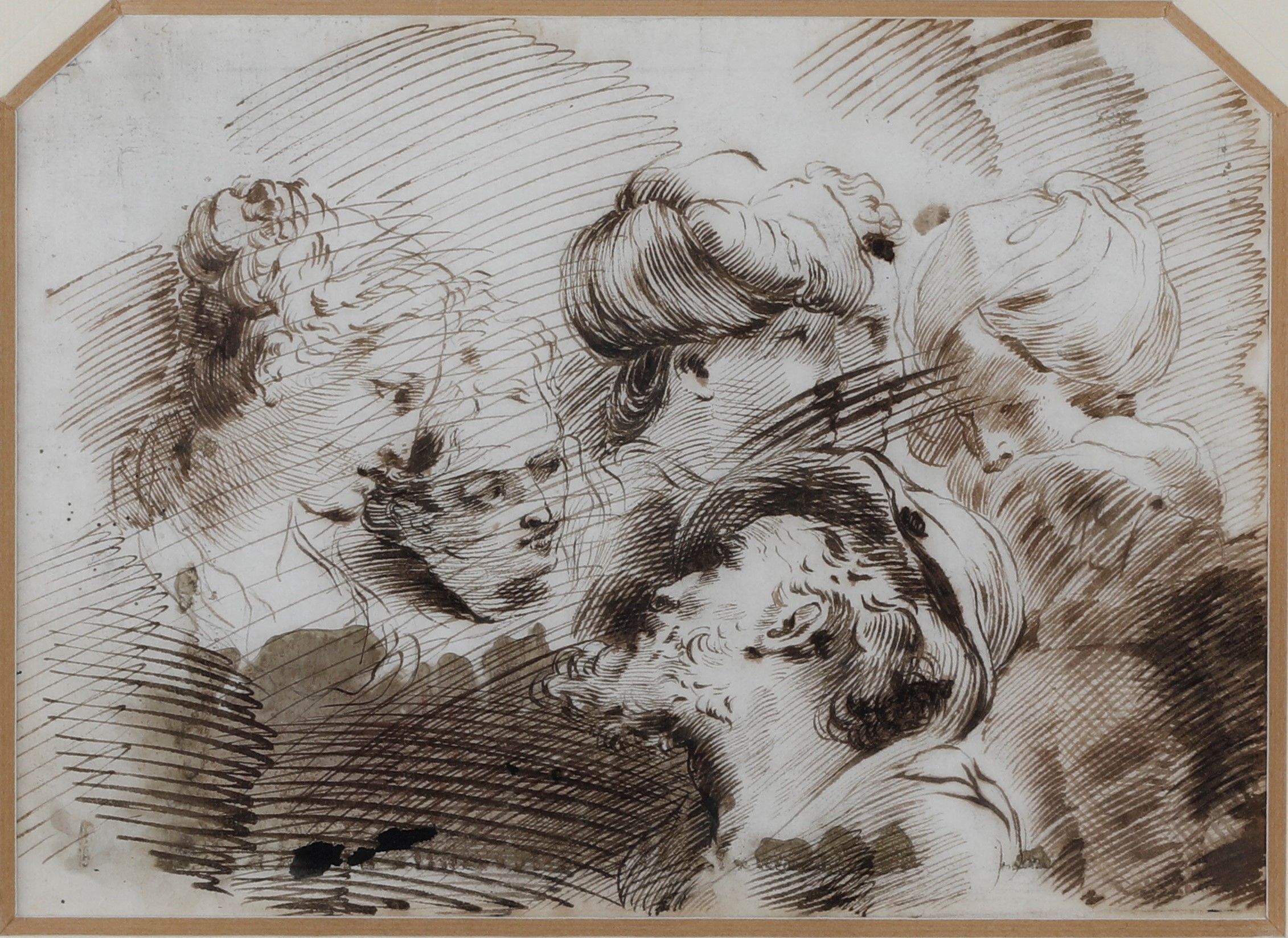 penna, inchiostro bruno, acquerello e tracce di matita nera su carta, Largh. 240 - Alt. 175 mm
