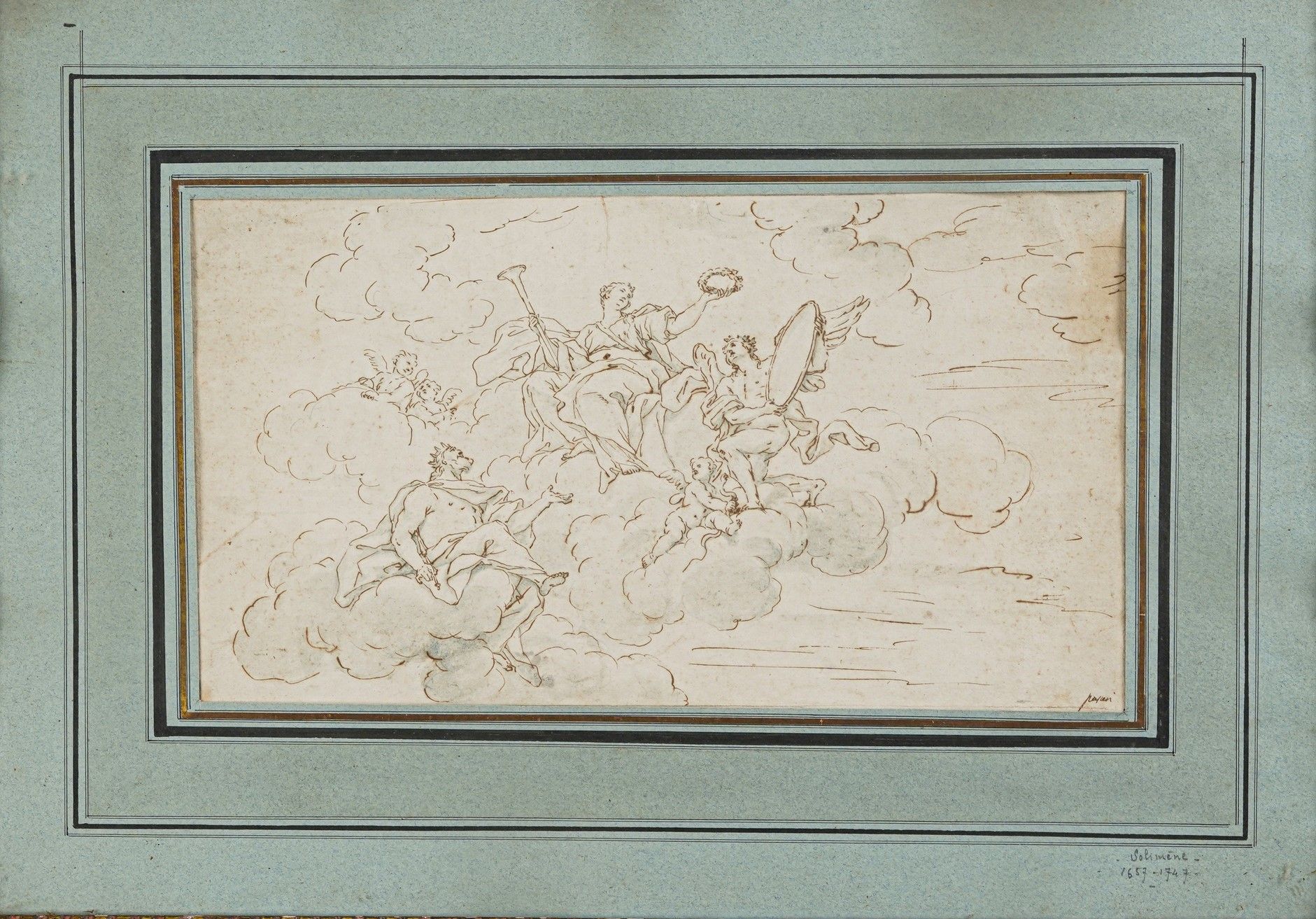 penna, inchiostro bruno e acquerello grigio su carta, Largh. 390 - Alt. 200 mm