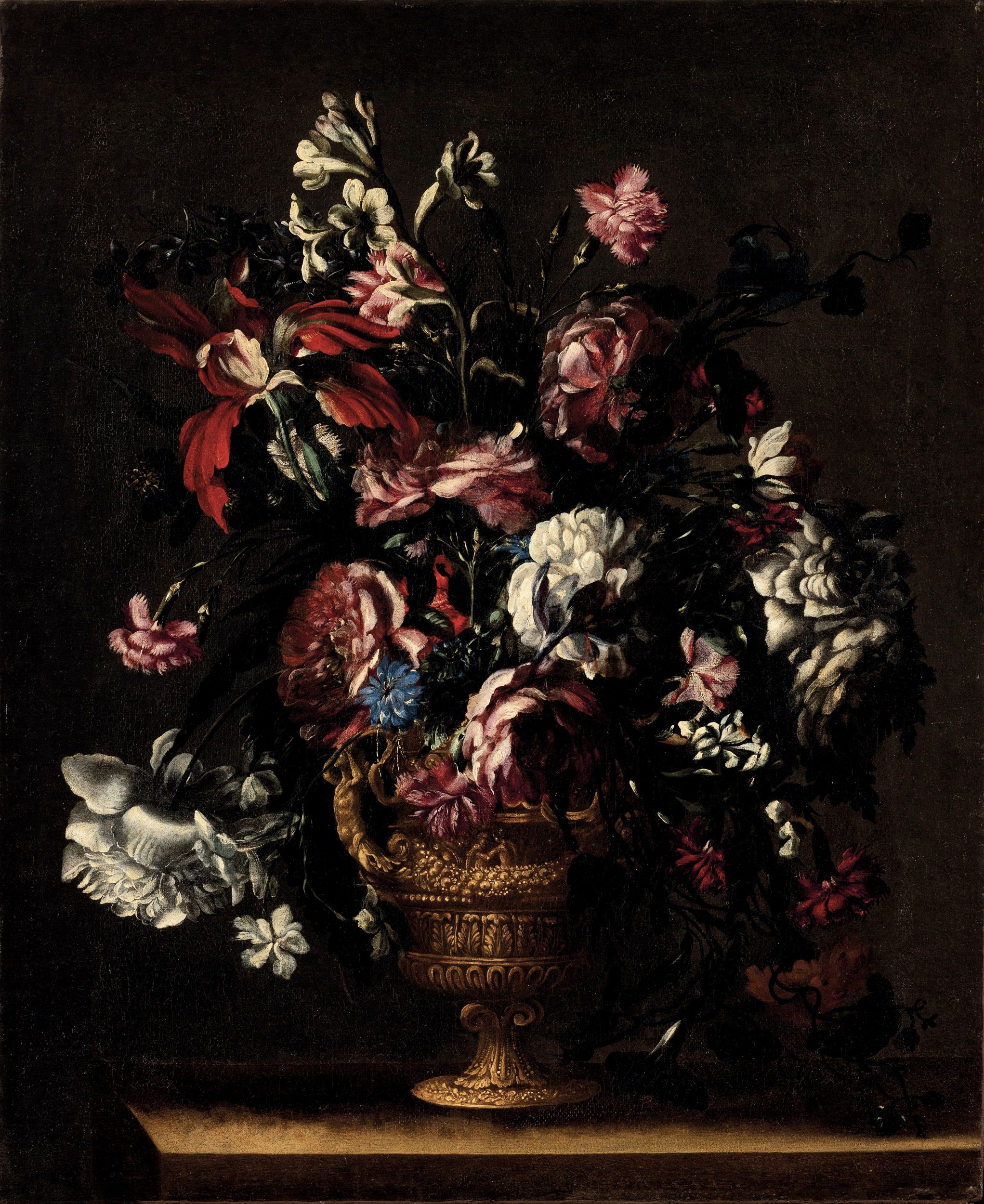 Natura morta con fiori in vaso istoriato