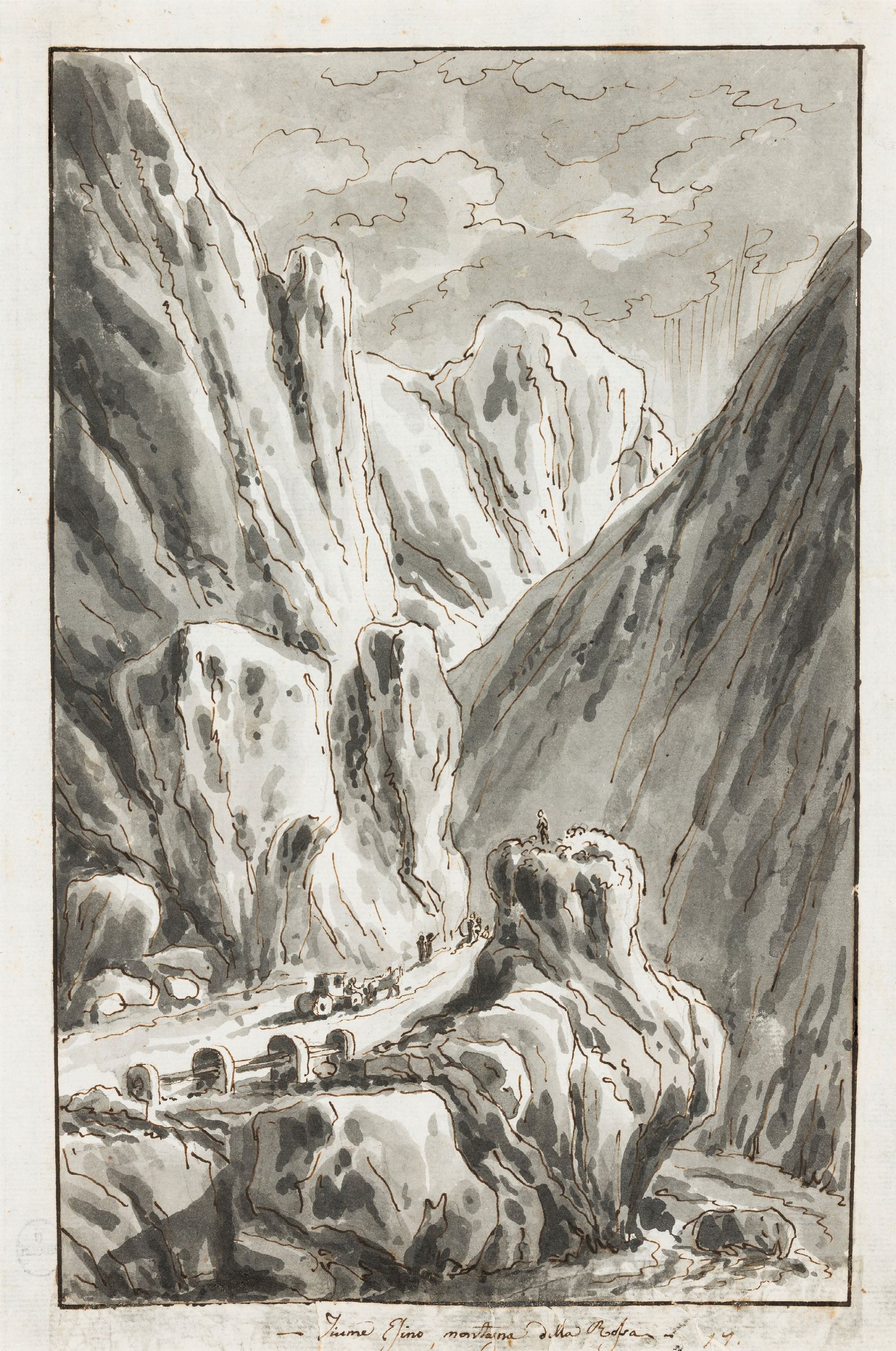 penna, inchiostro bruno e acquerello grigio su carta, Largh. 200 - Alt. 305 mm