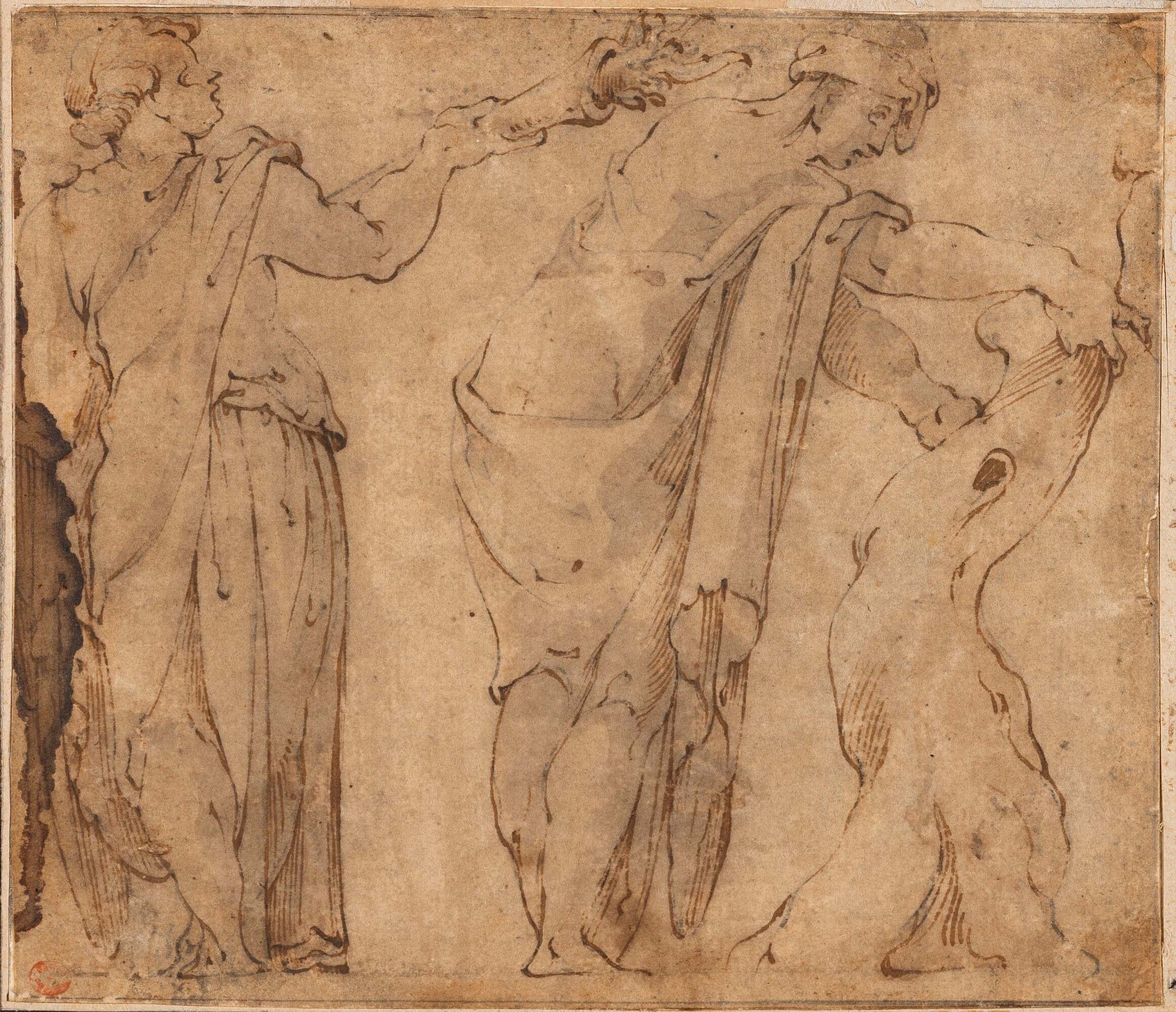 penna, inchiostro bruno e acquerello grigio su carta, Largh. 153 - Alt. 135 mm