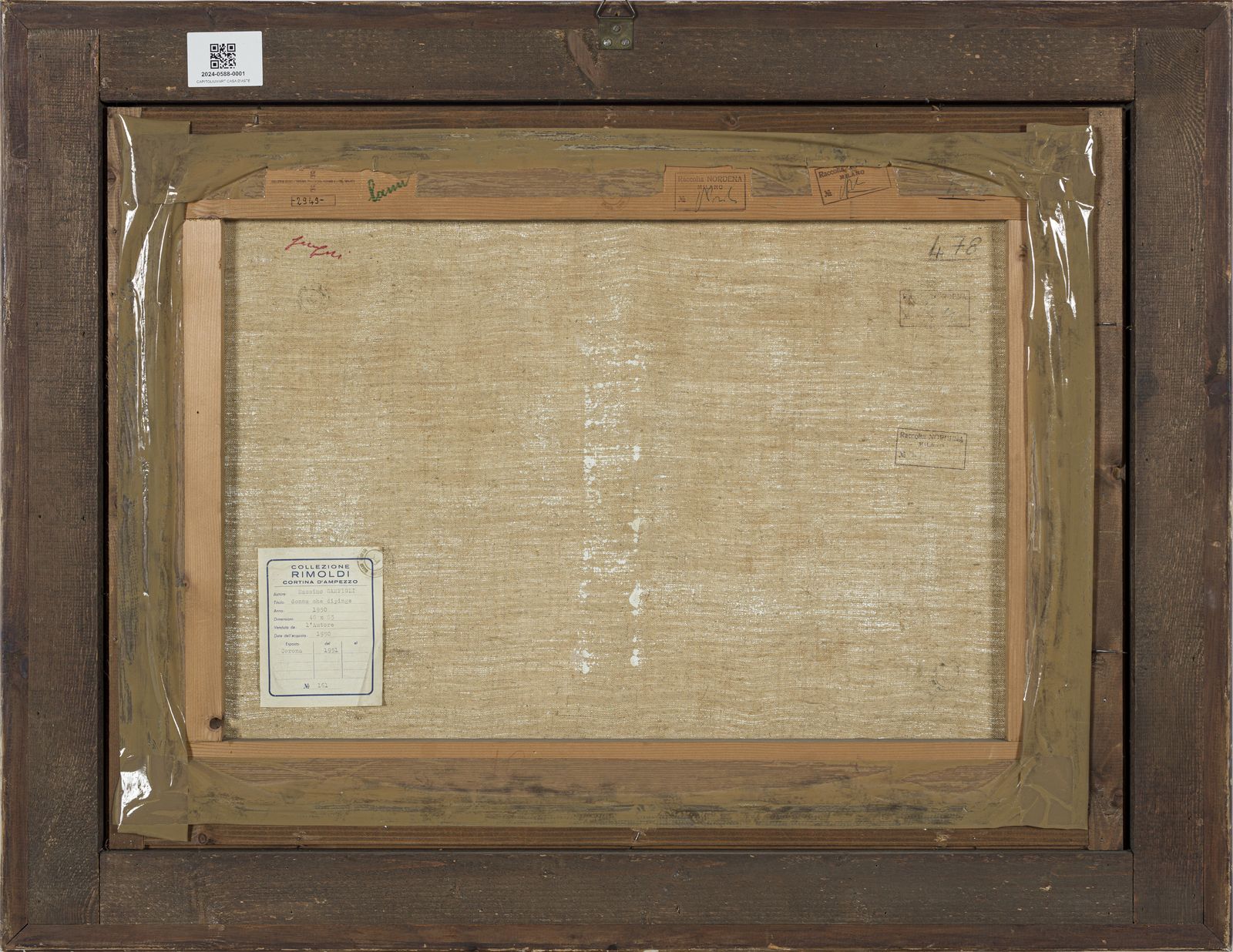 firma e datasul retro: timbro Galleria Gissi, Torino. etichetta e timbro Collezione Rimoldi, Cortina d’Ampezzo e timbri Collezione Nordena, MilanoL'opera č accompagnata da autentica di Nicola Campigli su fotografia Si ringrazia la dottoressa Eva Weiss per aver contribuito alla stesura della schedaPROVENIENZACollezione Mario Rimoldi, Cortina d’Ampezzo Galleria Gissi, TorinoGalleria Sianesi, MilanoGalleria Seno, MilanoCollezione Nordena, MilanoFinarte, Milano 10/6/1975Galleria Luce, VeneziaCollezione privata, BolzanoESPOSIZIONI?Opere della raccolta Rimoldi sistemate nell’Hotel Corona, Cortina d’Ampezzo 1951 (cat.)?La donna memoria ed emblema di M. Campigli, Gissi Galleria d’Arte, Torino giugno 1968, n. 7 (ripr.)?Maestri Moderni, Galleria Sianesi, Milano/Milano Marittima novembre–dicembre 1968 n. 30?Opere scelte di Maestri contemporanei per una Raccolta, Galleria Seno, Milano dicembre?1969, n. 13 (ripr.)??BIBLIOGRAFIA?Catalogo nazionale Bolaffi d’arte moderna, Torino 1976, n. 12, 1977, vol. I, p. 44?N. Campigli, E. Weiss, M. Weiss, Campigli. Catalogue raisonné, Cinisello Balsamo 2013, vol. II, p. 610, n. 50-038??FILMOGRAFIA?Un ora con Massimo Campigli, in: Incontri a cura di Gastone Favero, regia Raffaelle Andreassi, RAI 1969 (https://www.youtube.com/watch?v=Tf2d45KPU6w)