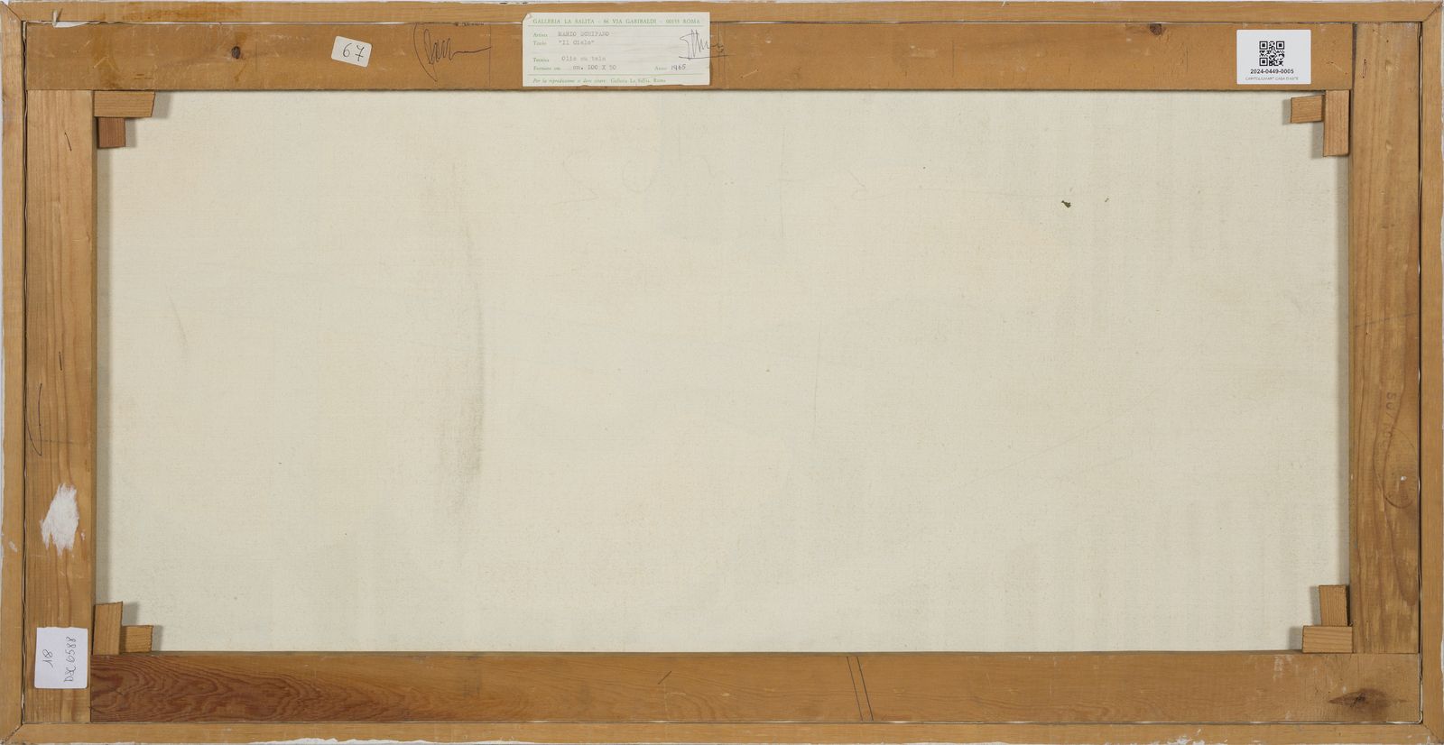 sul retro: firma. etichetta Galleria La Salita, RomaL'opera è accompagnata da certificato dell'Archivio Mario Schifano, a cura di Monica SchifanoPROVENIENZACollezione privata, Roma Galleria La Salita, RomaCollezione privata, RomaESPOSIZIONIMario Schifano, Salone delle scuderie in Pilotta, Istituto di Storia dell'arte, Parma febbraio-marzo 1974BIBLIOGRAFIAM. Calvesi, A. Moravia, A. C. Quintavalle, Mario Schifano, Parma 1974, s.i.p., n. 107