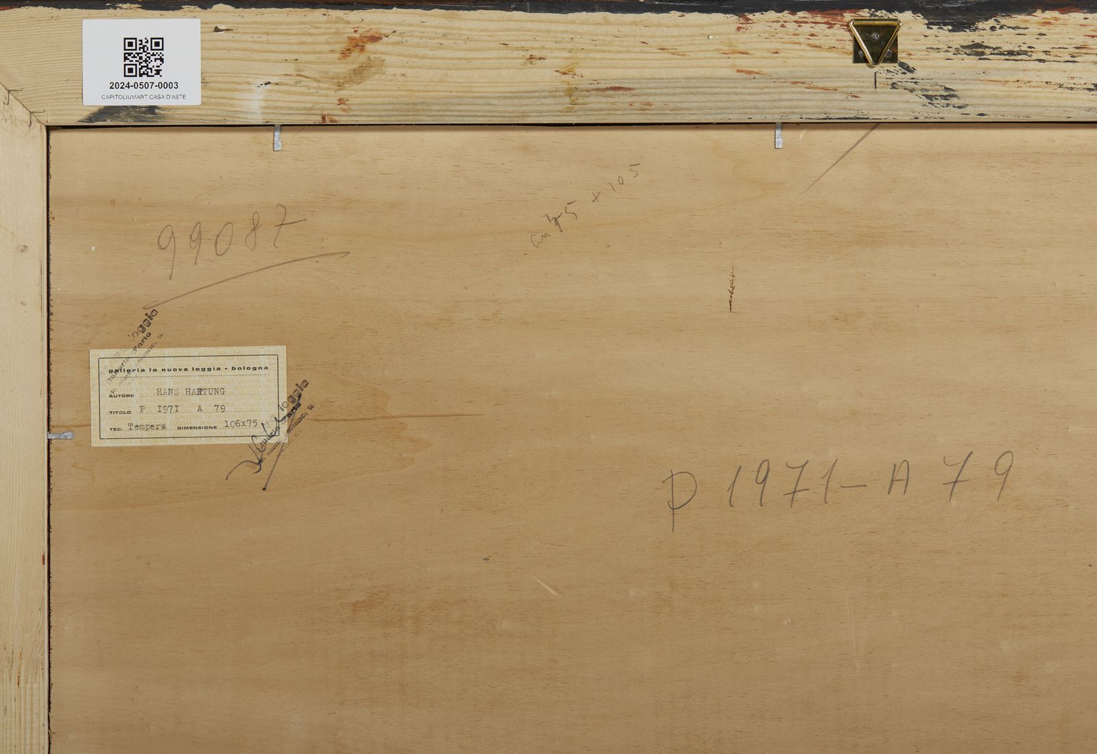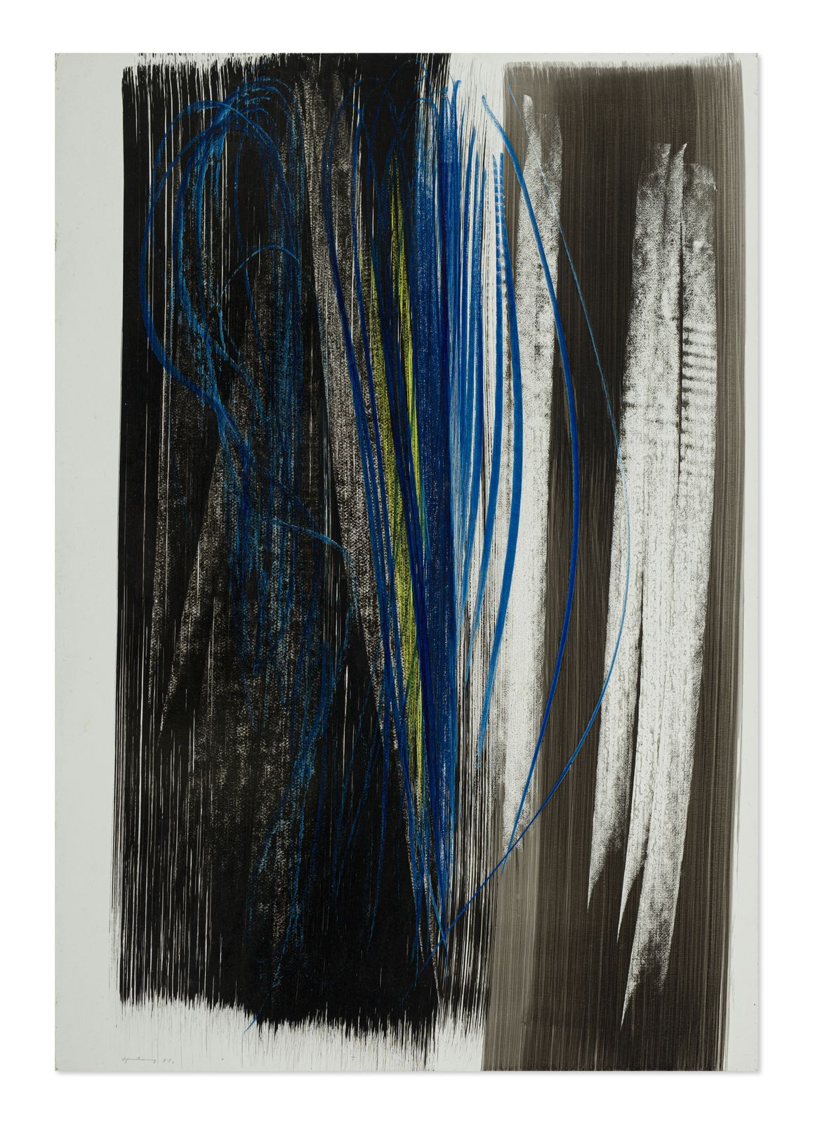 firma, data sul retro: titolo. etichetta e timbri Galleria La Nuova Loggia, Bologna e timbro Bottega il Ponte, Venezial'opera è registrata presso la Fondation Hans Hartung et Anna-Eva Bergman, Antibes e sarà inserita nel Catalogue Raisonné di prossima pubblicazionePROVENIENZAGalleria Meneghini, Venezia 1971Collezione privata, BolognaCollezione privata, La Spezia