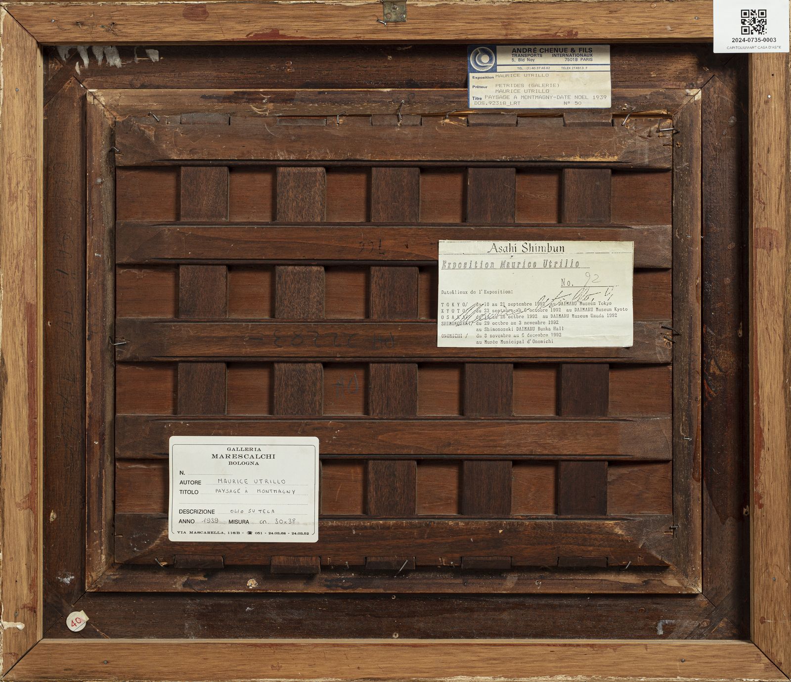 firma e data (Noel 1939)sul retro: etichette Galleria Marescalchi, Bologna e Asashi Shimbun, TokyoPROVENIENZACollezione M. Paul Pétridès, ParigiCliché Cauvin, ParigiGalleria Marescalchi, Bolognaivi acquisito dall'attuale proprietàESPOSIZIONIMurice Utrillo, Esposizione itinerante in Giappone, Tokyo, Kyoto, Osaka, Shimonoseki, settembre-dicembre 1992BIBLIOGRAFIAP. Pétridès, L'oeuvre complet de Maurice Utrillo, vol. III, Parigi 1969, pp. 234-235, n. 1983