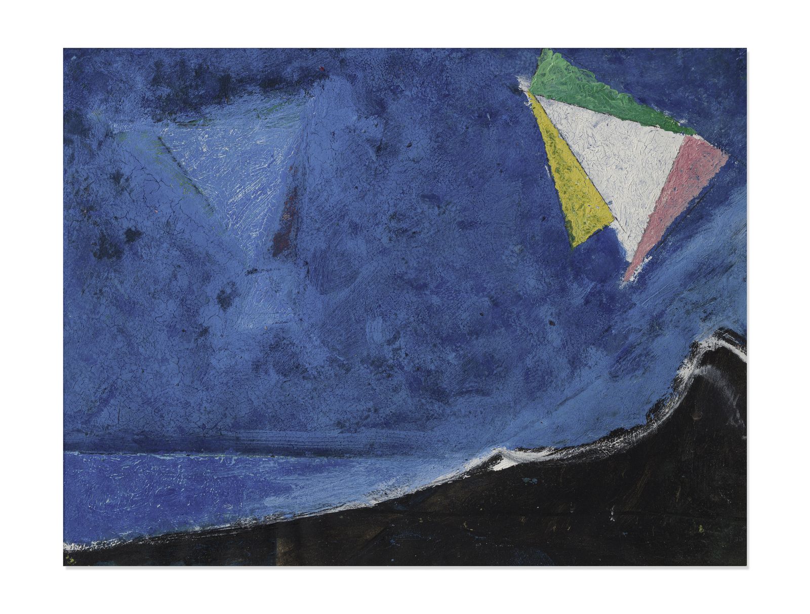 sul retro: firma e data. timbro la Nuova Bussola, Torino. etichette XXIX Biennale Internazionale d'Arte di Venezia, sezione italiana, 1958PROVENIENZANuova Bussola, TorinoCollezione privata, TorinoESPOSIZIONIPeintres d'aujord'hui. France - Italie, Palazzo delle arti, Torino 1957Licini, Centro culturale Olivetti, Ivrea 1958BIBLIOGRAFIAG. Marchiori, Licini, Ivrea 1958, p. 22, n. 54