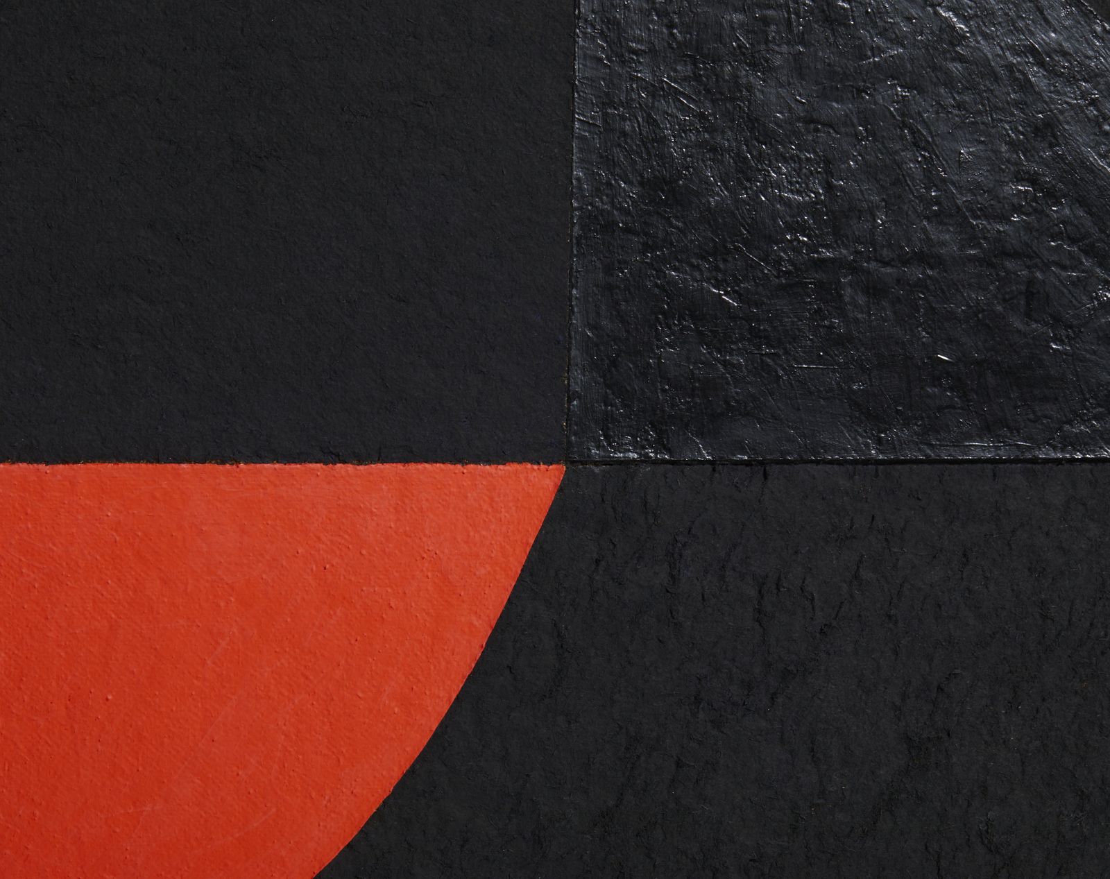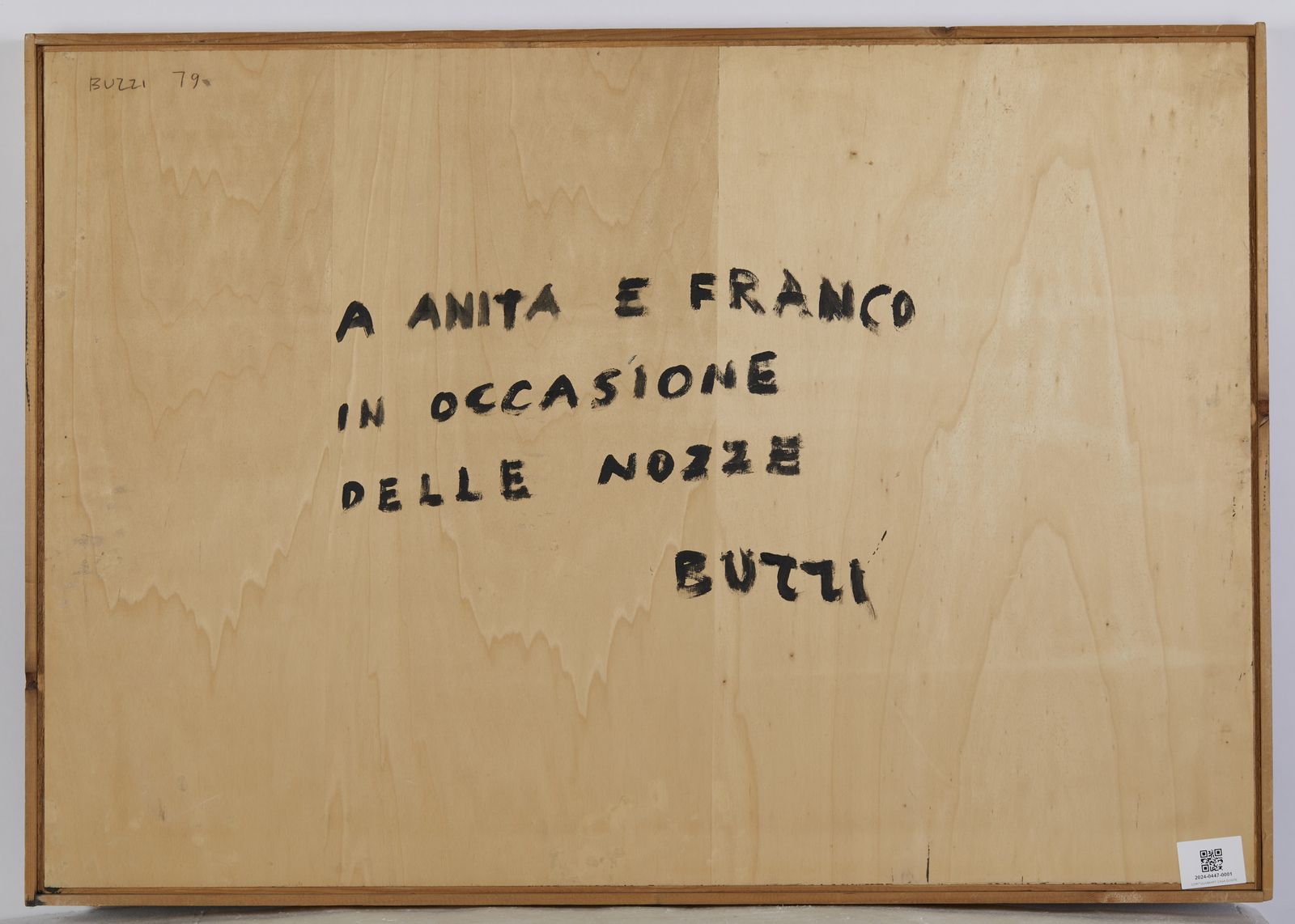 sul retro: firma, data e dedica ad personamPROVENIENZACollezione Bucchi, RomaBIBLIOGRAFIAN. Sarteanesi, Burri. Contributi al catalogo sistematico, Città di Castello 1990, pp. 280-281, tav. 1212, n. 79.10B. Corà, C. Sarteanesi, Burri. Catalogo generale. Pittura 1979-1994, Città di Castello 2016, vol. III, p. 70, n. 1680. Repertorio cronologico 1945-1994, vol. VI, p. 232, i.7910'Si tratta di un quadro a colori acrilici e vinavil su cellotex, tecnica sperimentata da Burri negli anni della maturità, dopo l’esperienza feconda dei cretti: una nuova esigenza di lavoro sulle forme astratte, un rinnovato interesse verso il colore e gli accordi cromatici, che risale agli studi degli impressionisti e dei postimpressionisti sulla teoria della visione.In particolare, in quest’opera sono accostate tonalità di neri (nero opaco, nero lucido, nero satinato) e una forma, quasi organica, di color rosso vivo. Il cellotex presenta al retro la dedica: “Ad Anita e Franco in occasione delle nozze”. Tale dedica fu scritta quando l’opera fu regalata alla nipote di Burri, Anita Bucchi (Roma, 1949 - 2004). La Bucchi, coreografa e ballerina, si sposò nel gennaio 1985, e probabilmente fu questa tensione cromatica a farle preferire il Cellotex a un cretto, inizialmente proposto in dono.Per comprendere il profondo legame familiare tra i destinatari dell’opera e l’artista occorre fare un passo indietro. La famiglia Burri era di origine marchigiana. la madre di Burri, invece, era di Città di Castello. Si chiamava Caterina Torregiani, e il padre di Anita.Annibale Bucchi (1888-1971) era suo cugino. Annibale fu un allievo di grande talento di Ottorino Respighi. Compositore egli stesso, calcò il palcoscenico accanto a Mascagni e Toscanini.Nel 1946, all’epoca in cui ritornava dal campo di prigionia in Texas (era stato internato dagli americani in quanto aderente alla R.S.I.), Burri decise che non avrebbe più esercitato la professione di medico. Negli Stati Uniti si era avvicinato alla pratica artistica con le prime esperienze nell’intaglio del legno e nella pittura. Dopo il ritorno a Città di Castello, Burri visse alcuni mesi di inquietudine. Annibale decise di ospitare suo cuginonel grande appartamento in cui viveva da solo, in Lungotevere Prati a Roma. All’origine della storia del Burri artista si colloca dunque un rapporto familiare ed affettivo importante. Alberto Burri restò dal cugino per circa due anni prima di prendere studio in via Margutta con lo scultore Edgardo Mannucci (1904-1986), un artista oggi poco conosciuto. Poco dopo Burri formò il Gruppo Origine con Mario Ballocco, Giuseppe Capogrossi, Ettore Colla, ottenendo i primi riconoscimenti. Negli anni ’50, AnnibaleBucchi dedicò una partitura al cugino artista, e durante tutta la vita l’artista ebbe un rapporto di affetto filiale verso Anita.'Si ringrazia Andrea Iezzi per il contributo apportato nella stesura della scheda