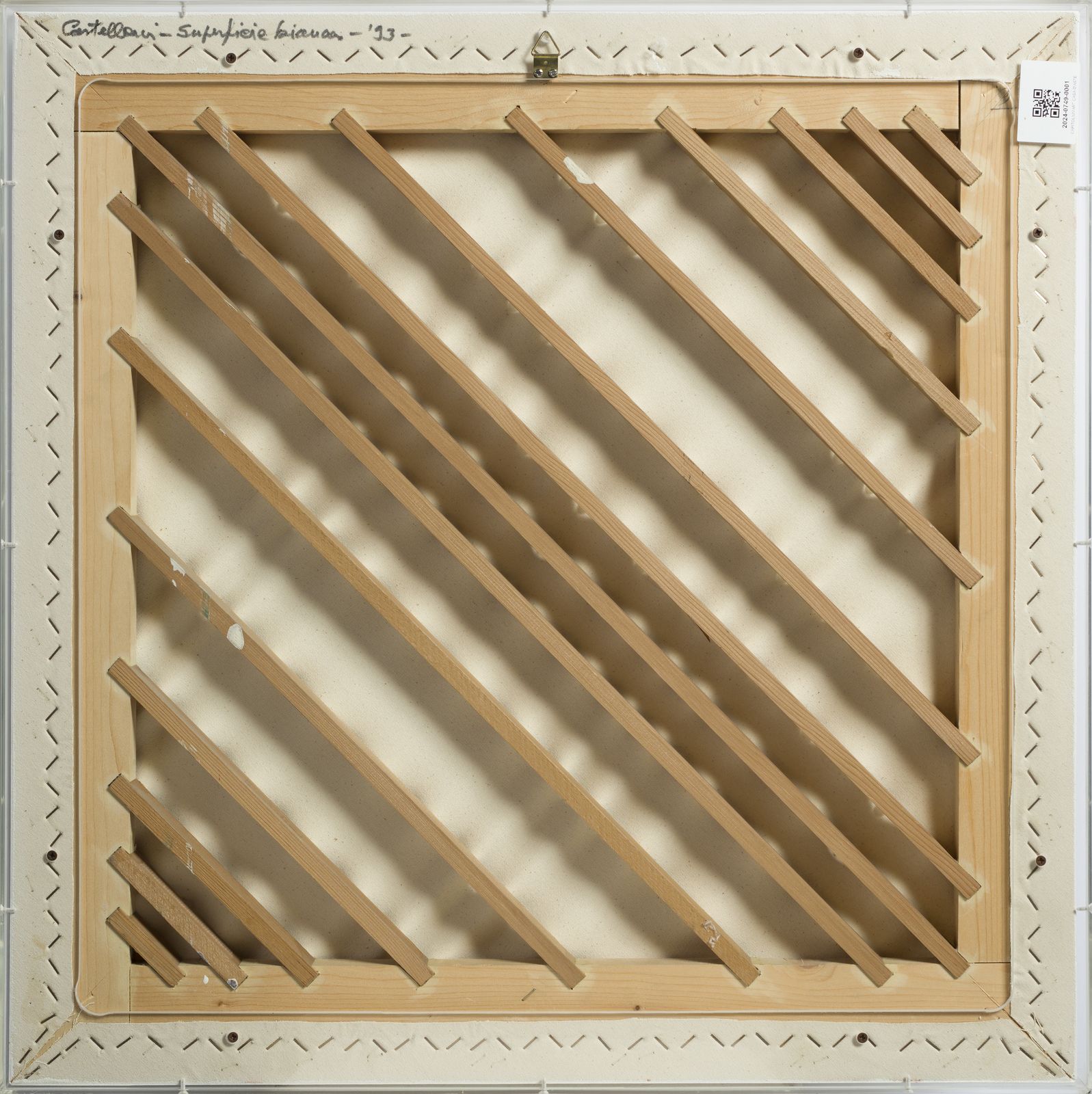 sul retro: firma, data e titolo.L'opera è accompagnata da autentica dell'artista su fotografia PROVENIENZACollezione privata, Cosenza BIBLIOGRAFIAR. Wirz. F. Sardella, Enrico Castellani. Catalogo ragionato 1955-2005, vol. II, Milano 2013, p. 519 n. 744