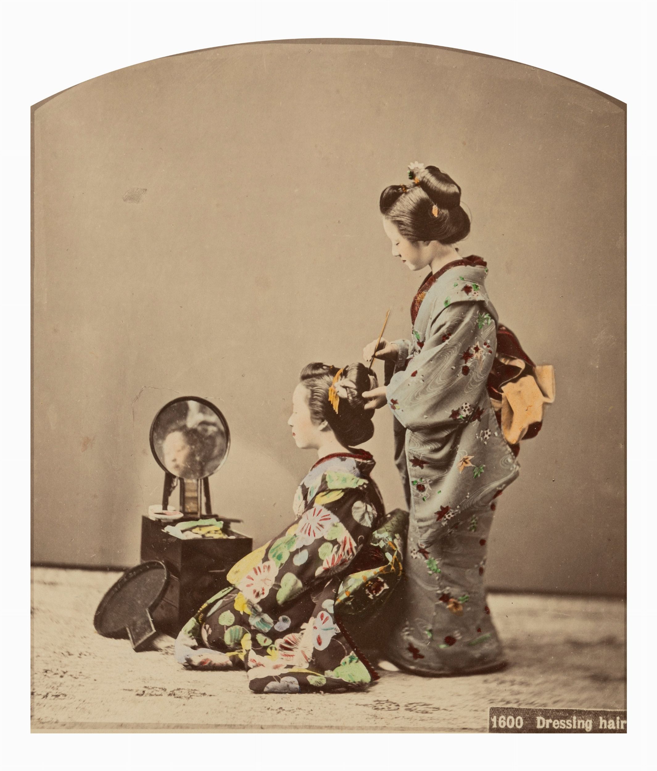 Stampa all'albumina, colorata a mano, applicata a cartoncino originale, cm 26 x 20 (cm 37,5 x 30 cartoncino)