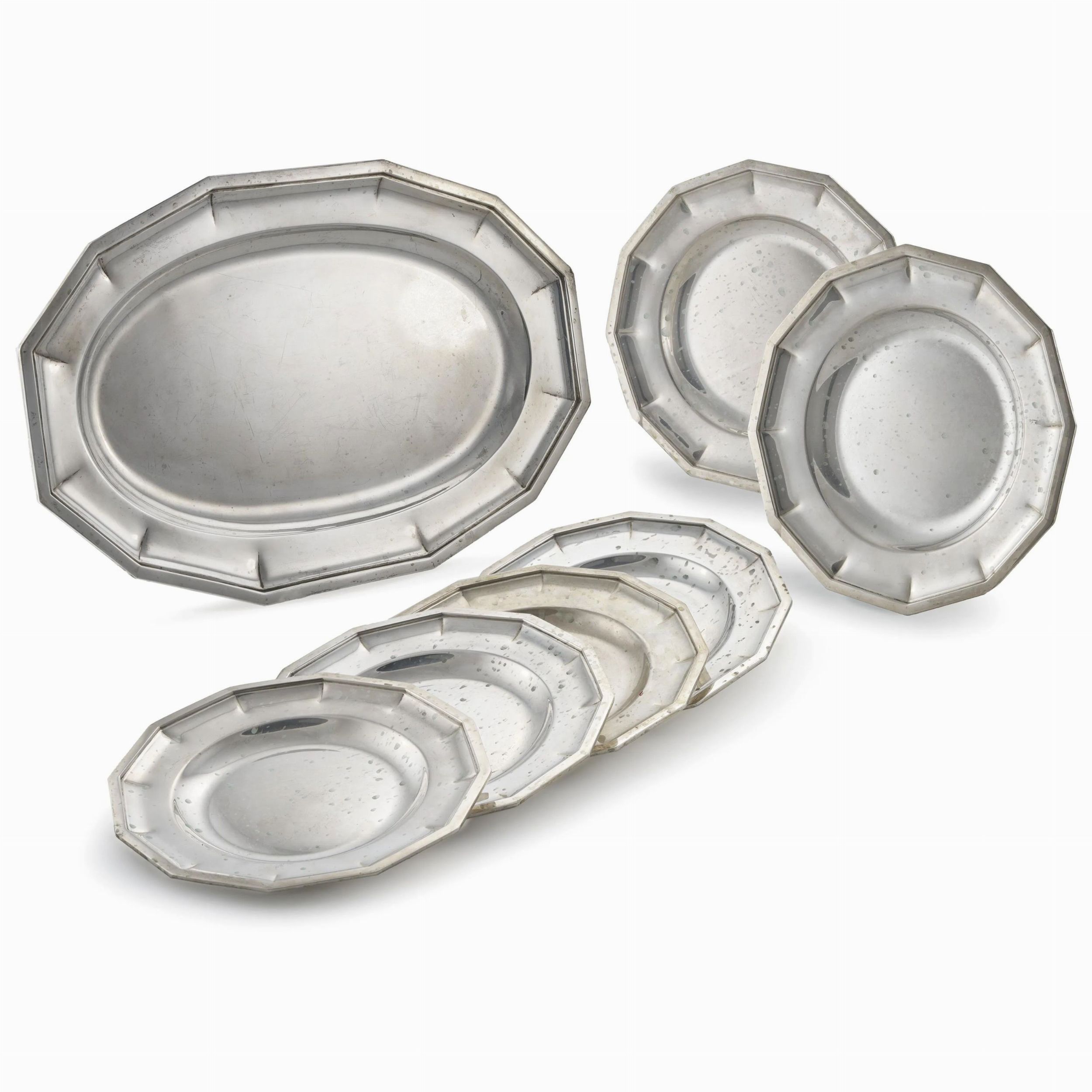 SEI PIATTI E VASSOIO, ROMA, SECOLO XX, ARGENTIERE FORNARI