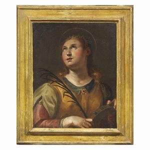 Scuola del sec. XVIII DAVIDE CON LA TESTA DI GOLIA olio su tela, cm 57x45 School of 18th century [..]