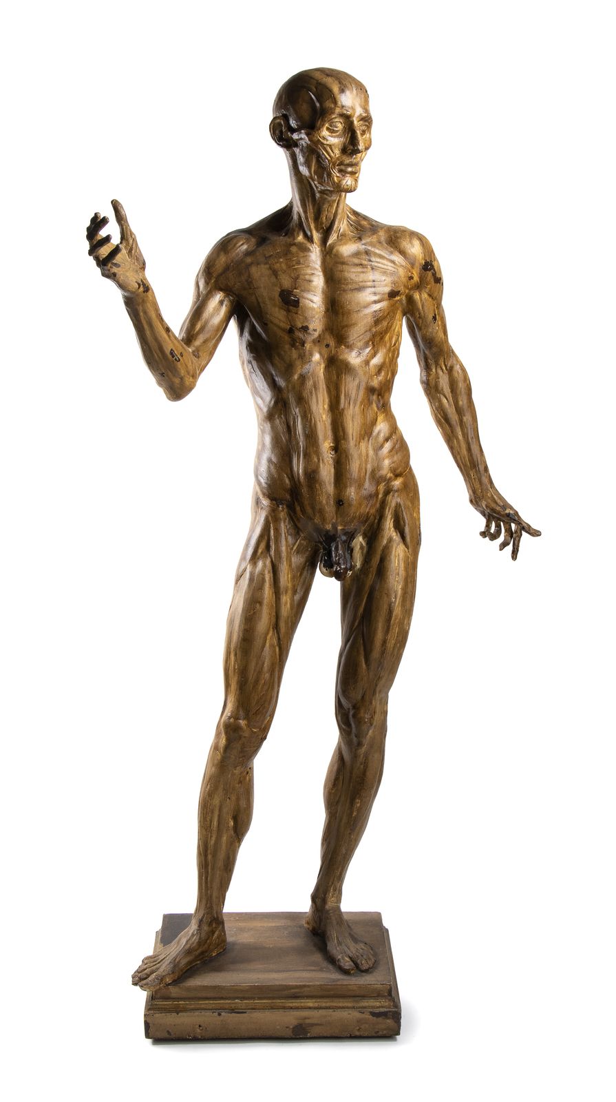 Bellissimo manichino anatomico scarnificato in legno. Italia, XIX sec.