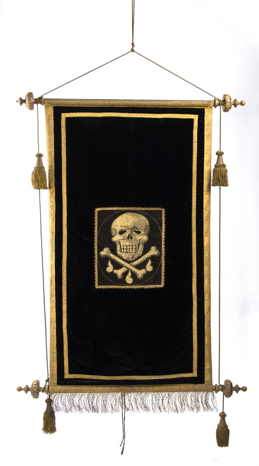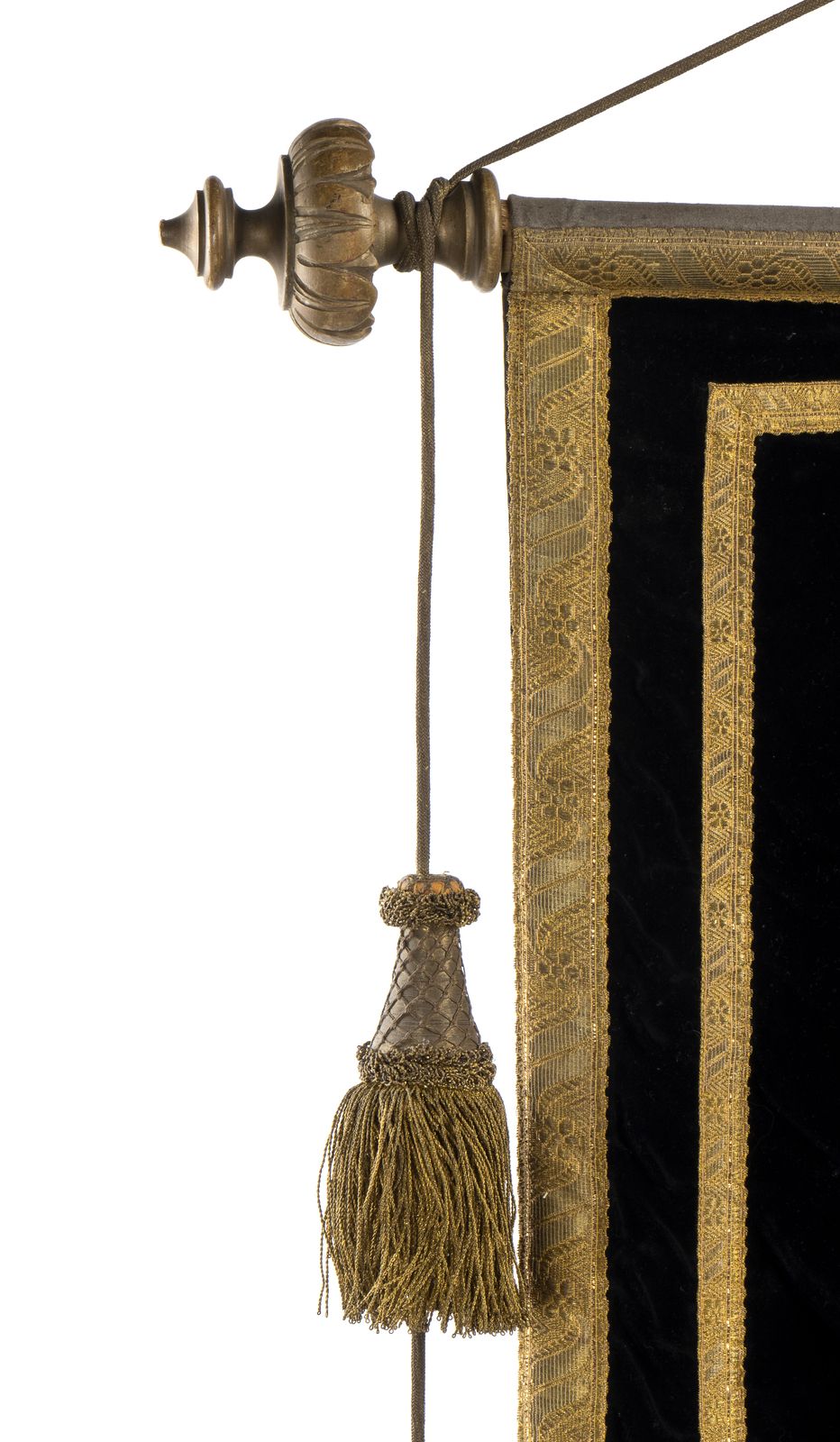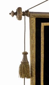 Bellissimo stendardo in velluto, filo dorato e nappe antiche. Italia, XIX sec.