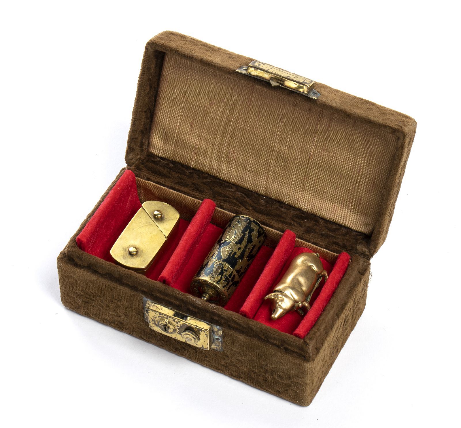 Scatola con tre portafiammiferi. Fine XIX sec.