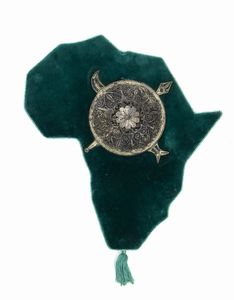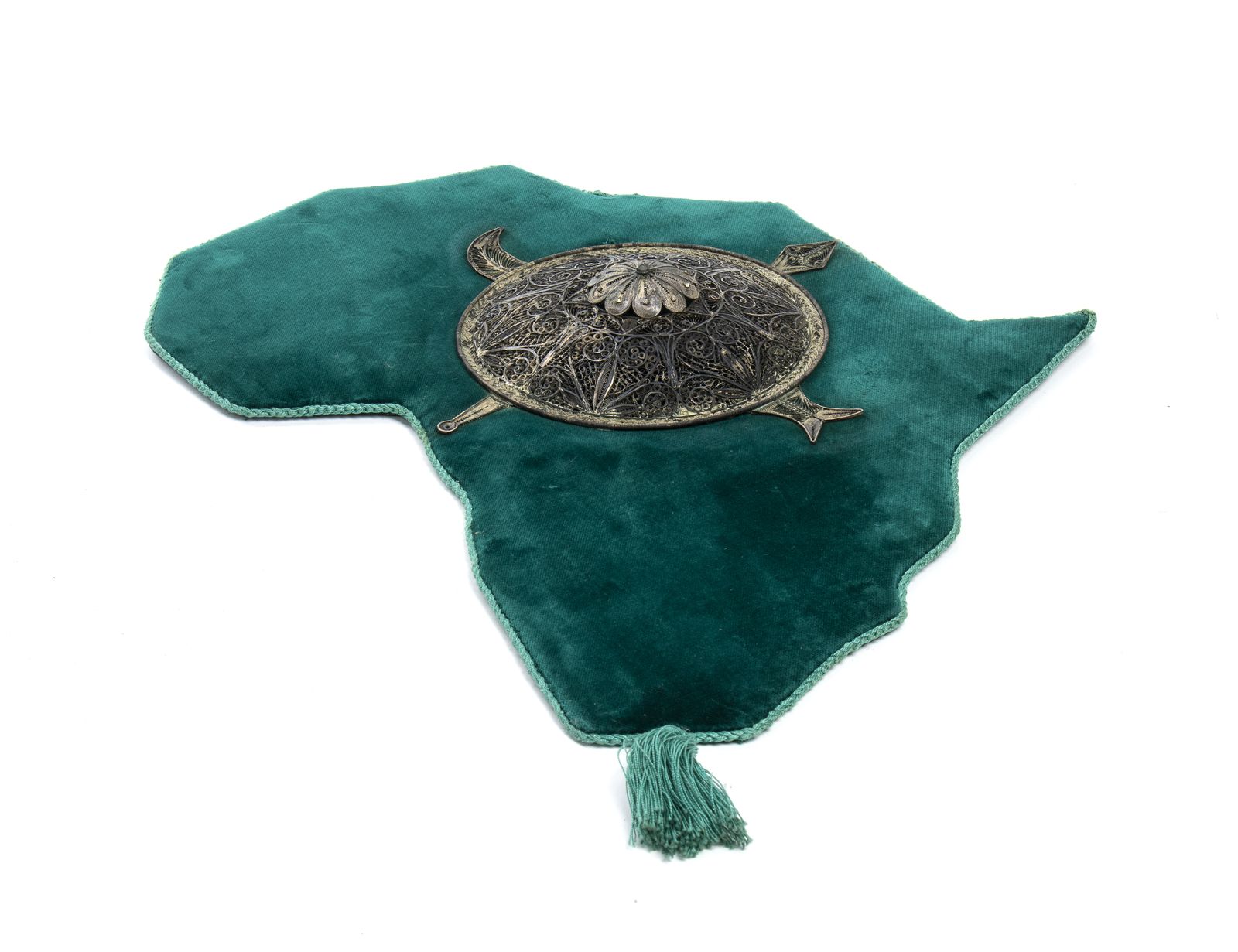 Cucito su di una mappa d'Africa in velluto verde.