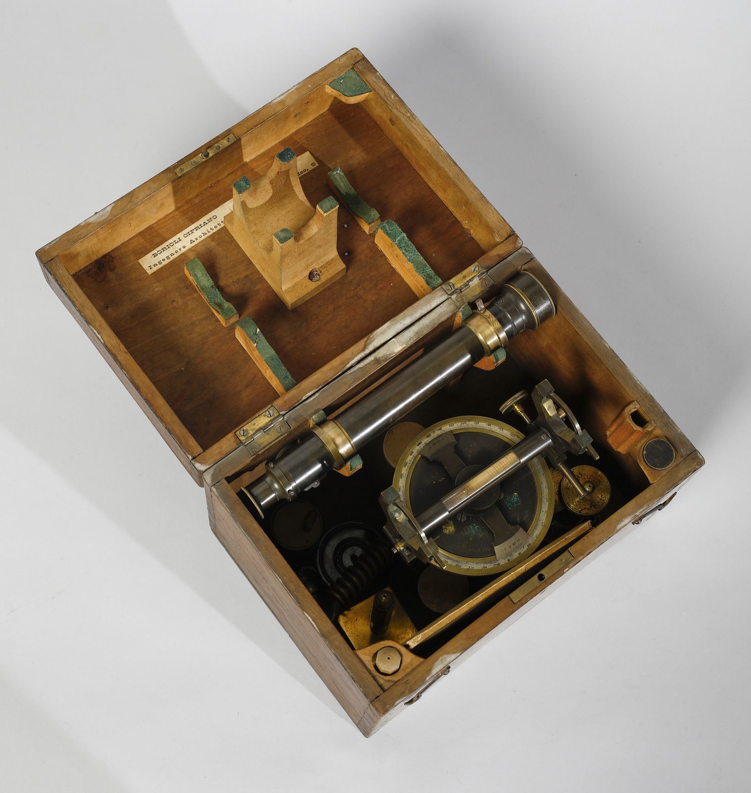 Sull'etichetta riporta la seguente dicitura: 'Borioli Cipriano Ingegnere Architetto, Via Principe Amedeo, 5'. Misure con scatole: piccola: 9,5 x 20 x 10 cmTacheometro: 23 x 30 x 21 cm