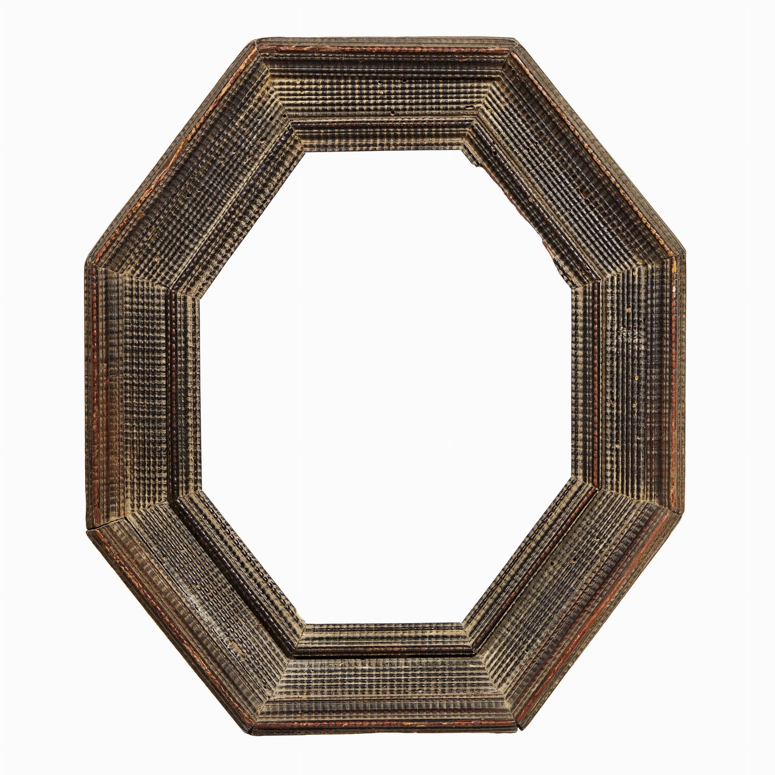 in legno ebanizzato di forma ottagonale, interamente lavorata a intaglio guilloché , ingombro cm 32,5x27,4, luce cm 22x17,3