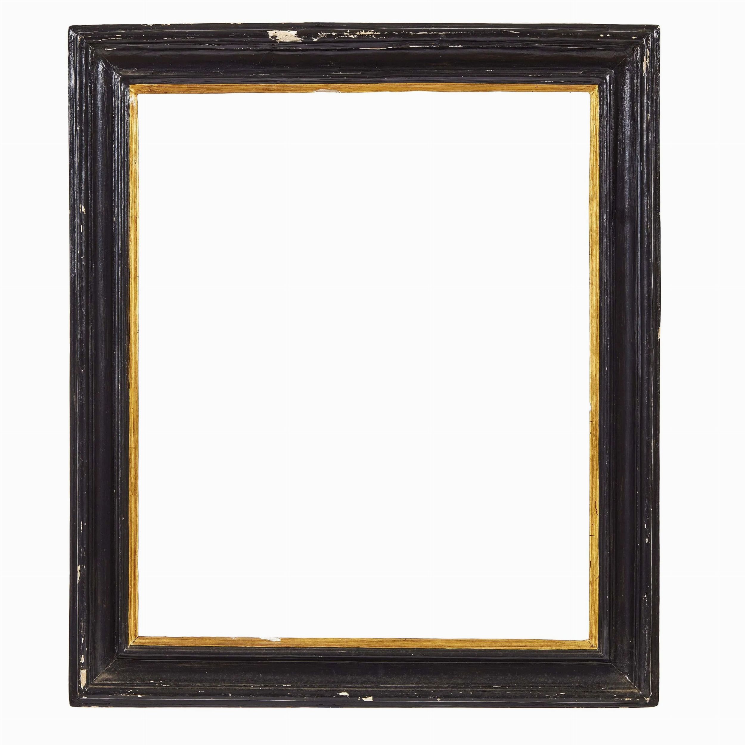 in legno ebanizzato, battuta dorata si apre su sagoma a più ordini di modanature, ingombro cm 89x77, luce cm 70,4x58,6