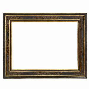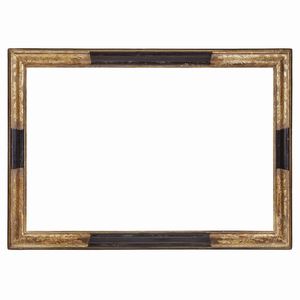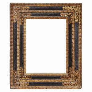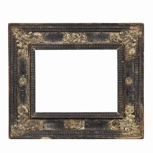 CORNICE, ITALIA CENTRALE, SECOLO XVII in legno ebanizzato e parzialmente dorato, sottile battuta scende in modanatura [..]