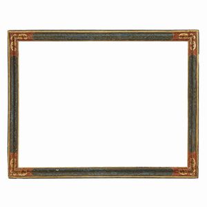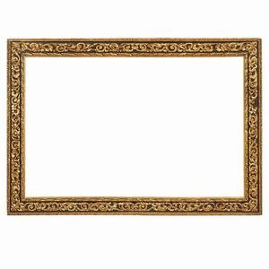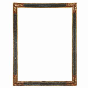 CORNICE, TOSCANA, SECOLO XVII in legno intagliato, dipinto e parzialmente dorato, sottile battuta dorata si [..]