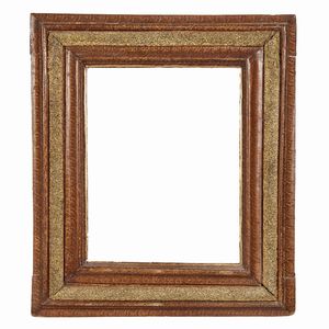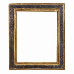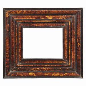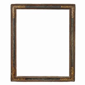CORNICE, MARCHE, SECOLO XVII in legno dipinto a finta tartaruga con angoli e riserve centrali dorate e intagliate [..]