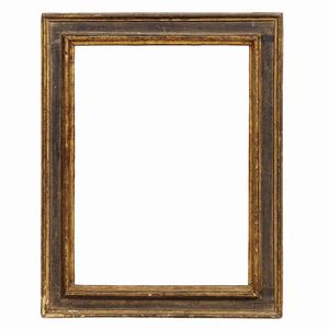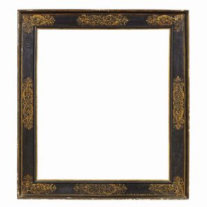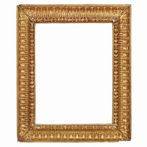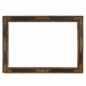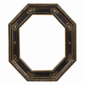 CORNICE, TOSCANA, SECOLO XVII in legno intagliato e ebanizzato, di forma ottagonale con battuta dorata e fascia [..]