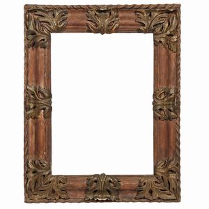 CORNICE, ITALIA CENTRALE, SECOLO XVIII in legno intagliato e dorato di forma ovale, battuta si apre su più [..]