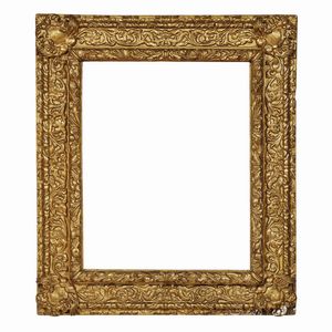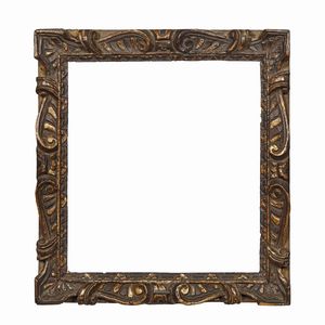 CORNICE, ITALIA SETTENTRIONALE, SECOLO XVIII in legno intagliato, ingombro cm 89,8x104,6, luce cm 51,9x62,3 [..]