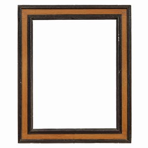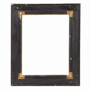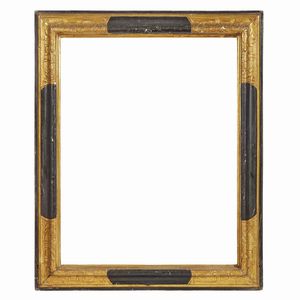 CORNICE, TOSCANA, SECOLO XVII in legno ebanizzato e parzialmente dorato, battuta dorata sale mediante modanatura [..]