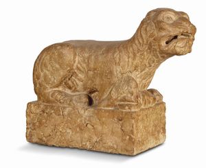 Italia settentrionale, secolo XIV LEONE STILOFORO scultura in marmo rosso di Verona, cm 45x54x21 [..]