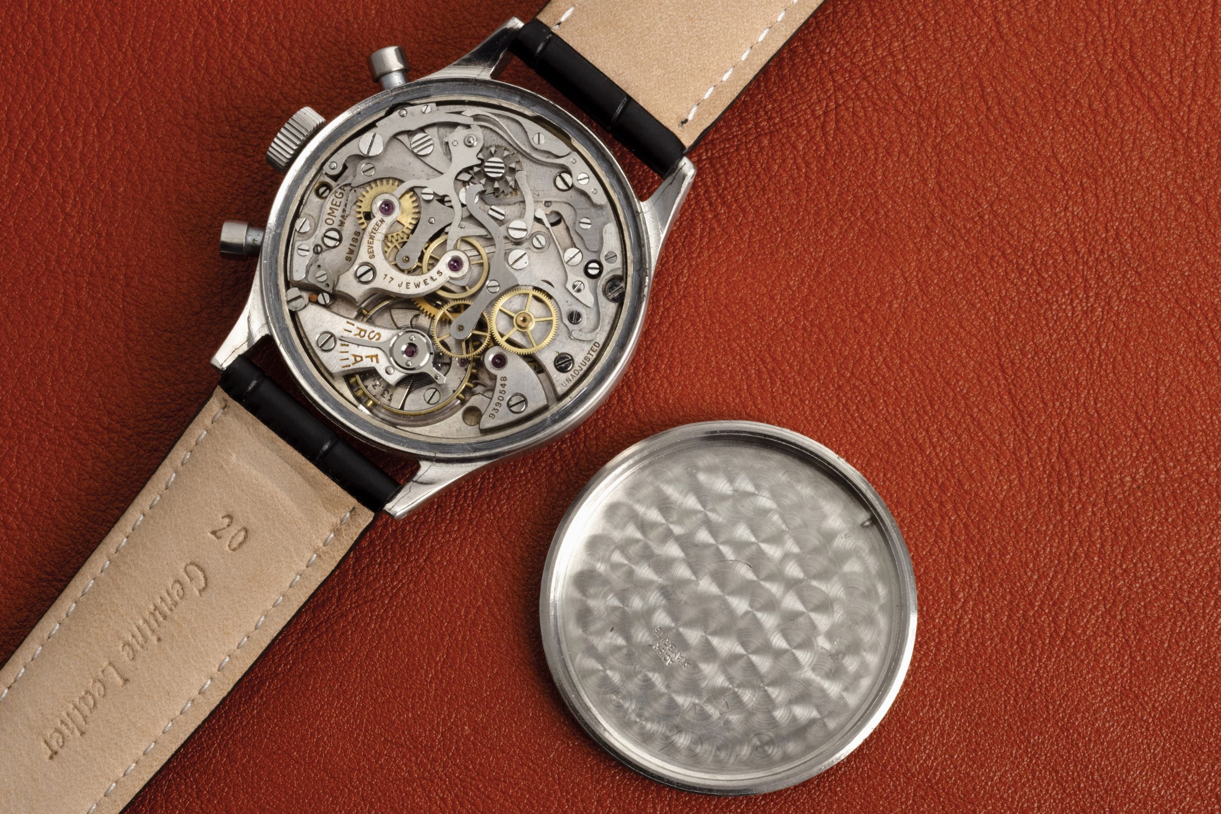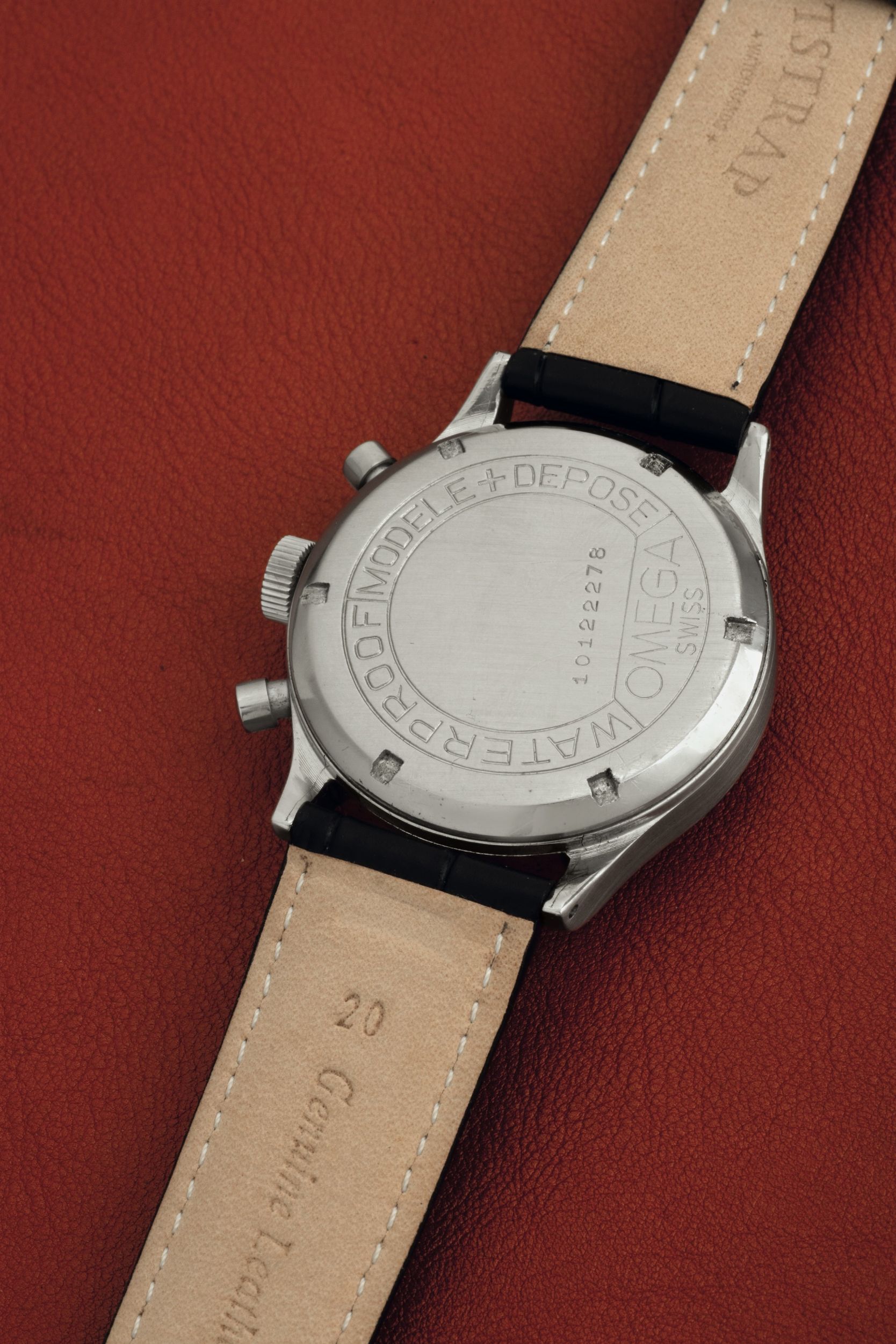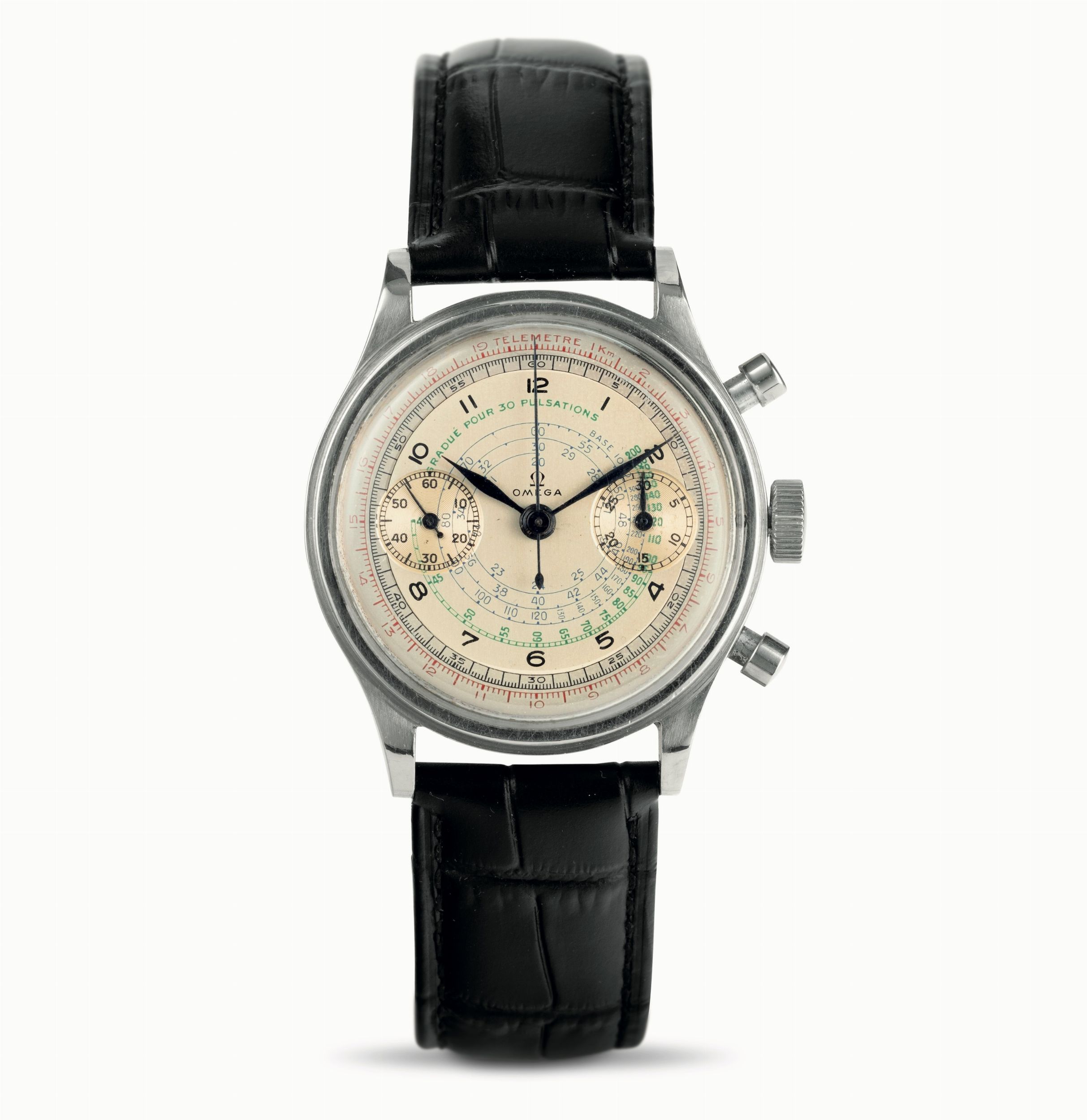 Rarissimo cronografo due contatori con tasti a pompa, quadrante grigio bitonale [..]