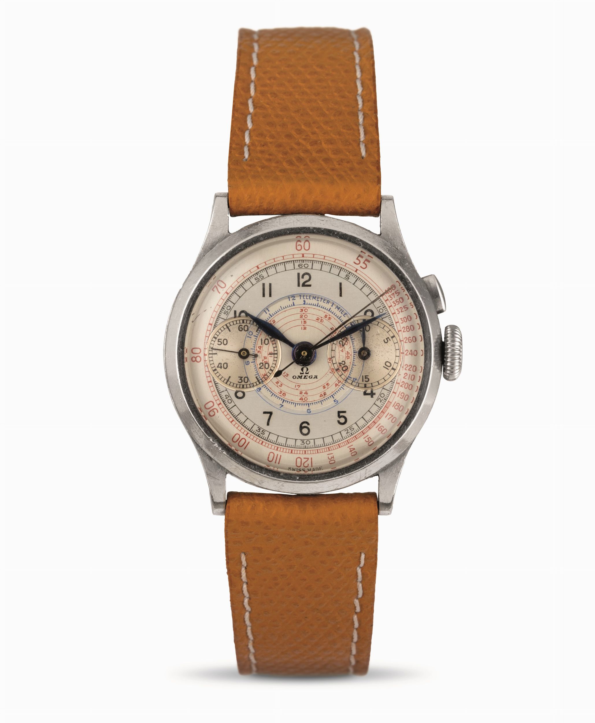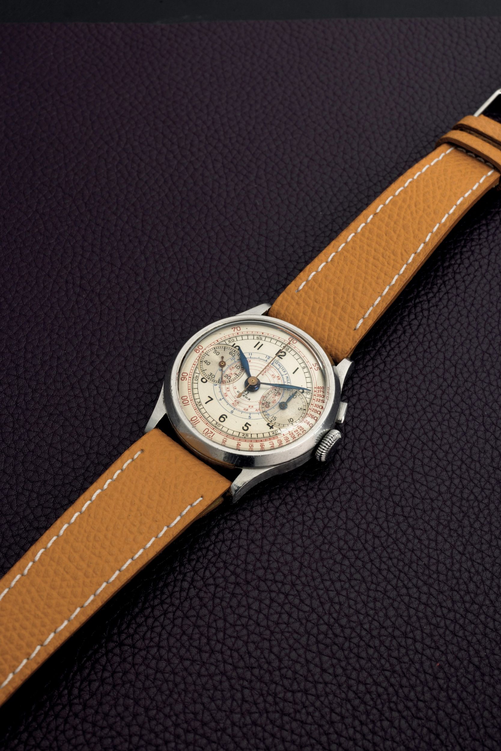 Rarissimo cronografo monopulsante cal. 28.9 in acciaio con quadrante tre toni e [..]