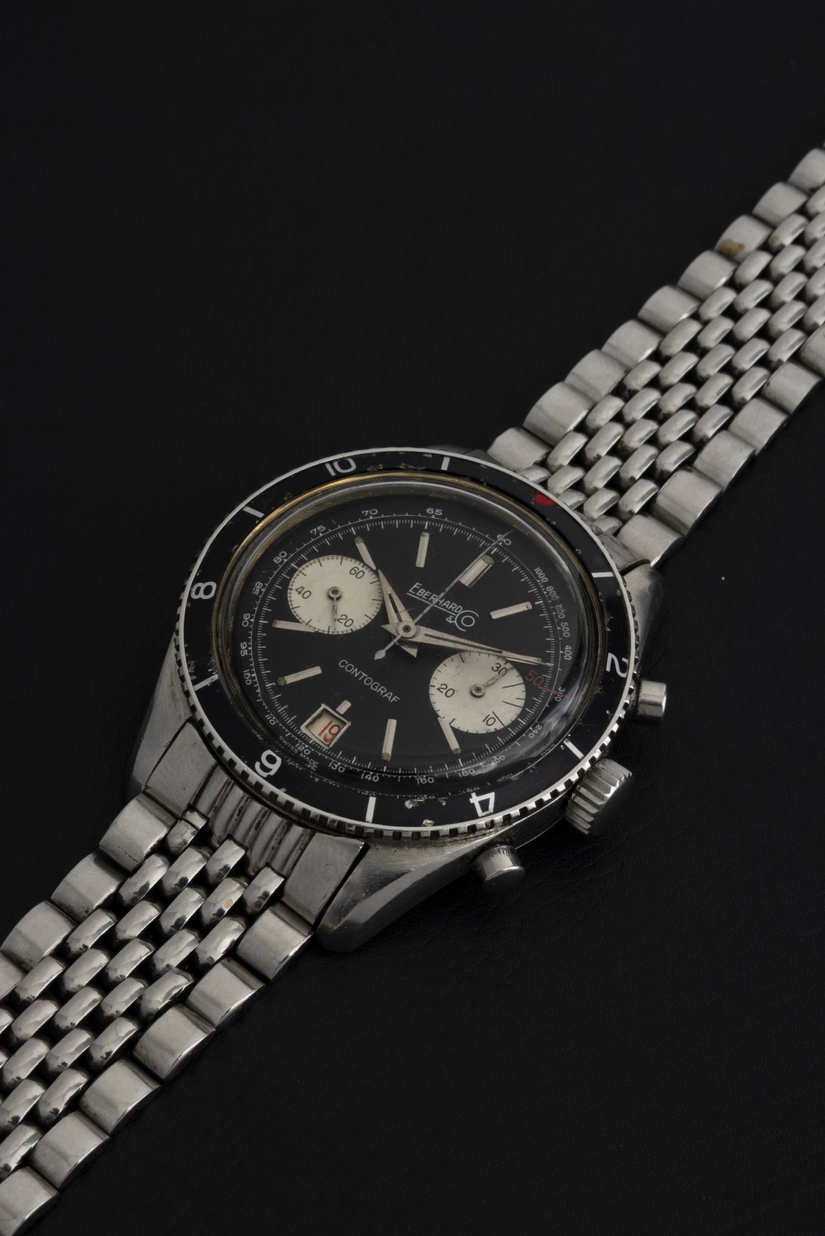 Raro Contograf ref 14901 in acciaio, cronografo tasti a pompa con indicazione della [..]