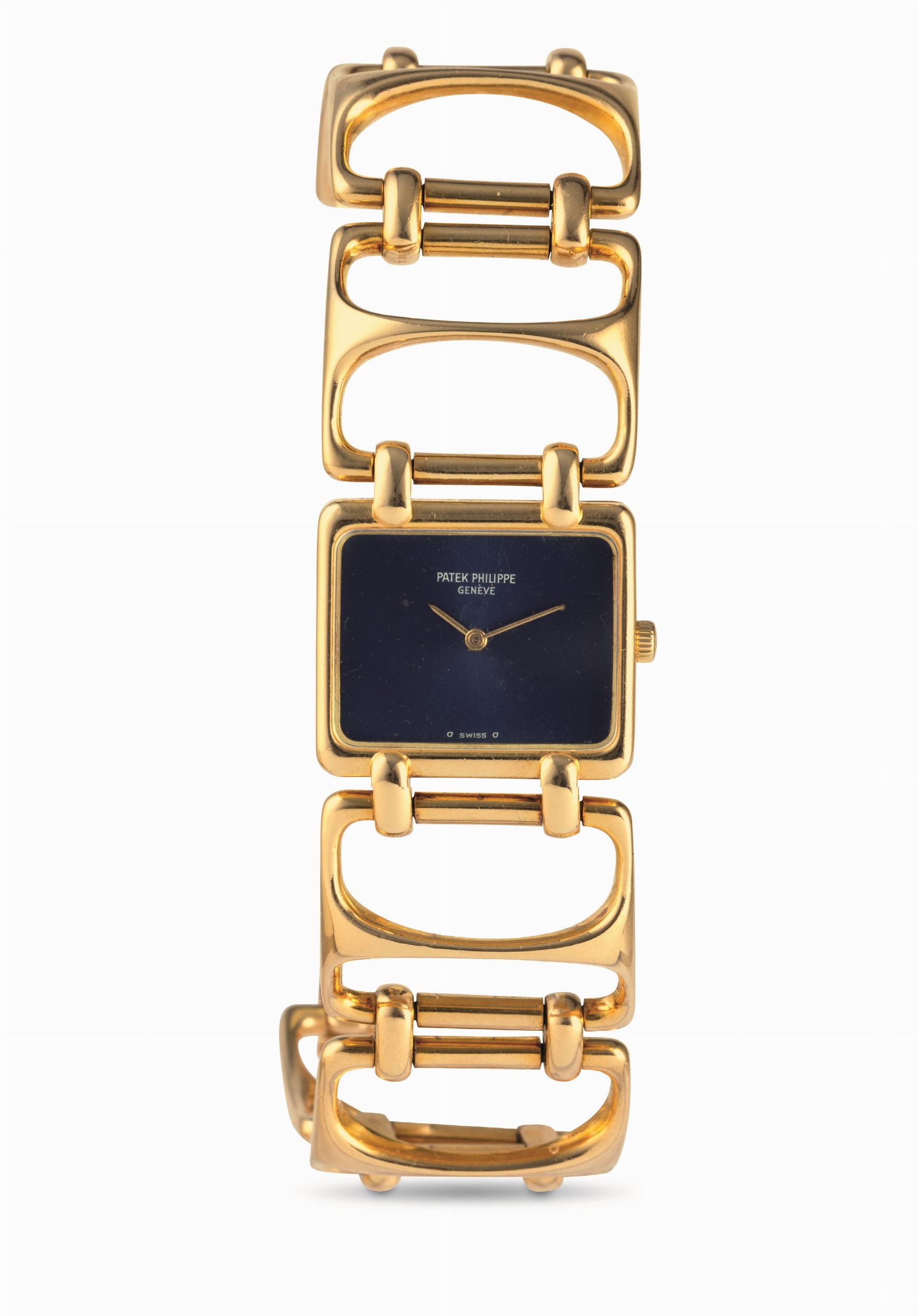 Ref 4237-1 con bracciale a catena in oro giallo 18k, quadrante blu carica manual [..]