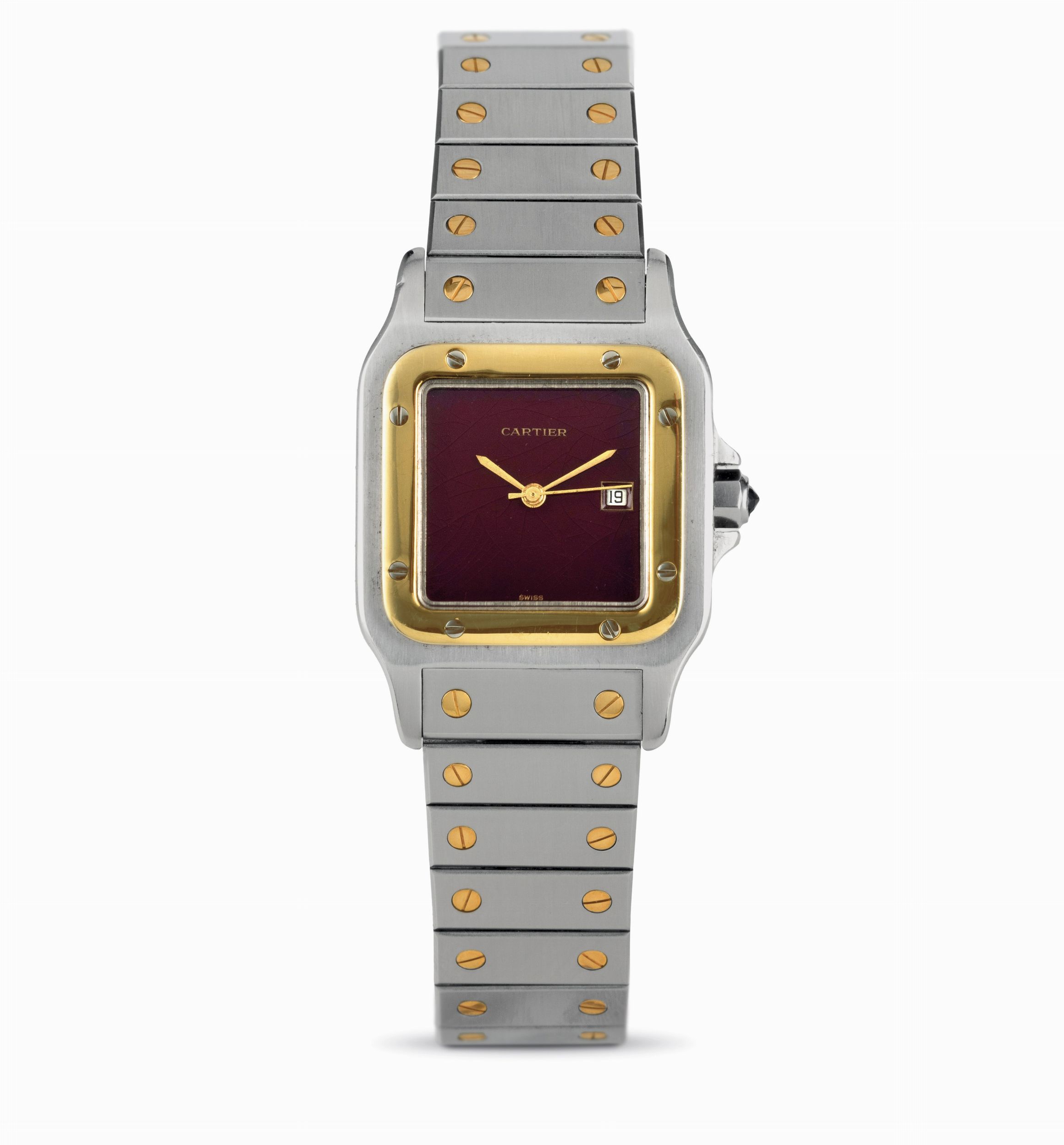 Santos Carrče automatico ref 2691 con raro quadrante Burgundy acciaio e oro
