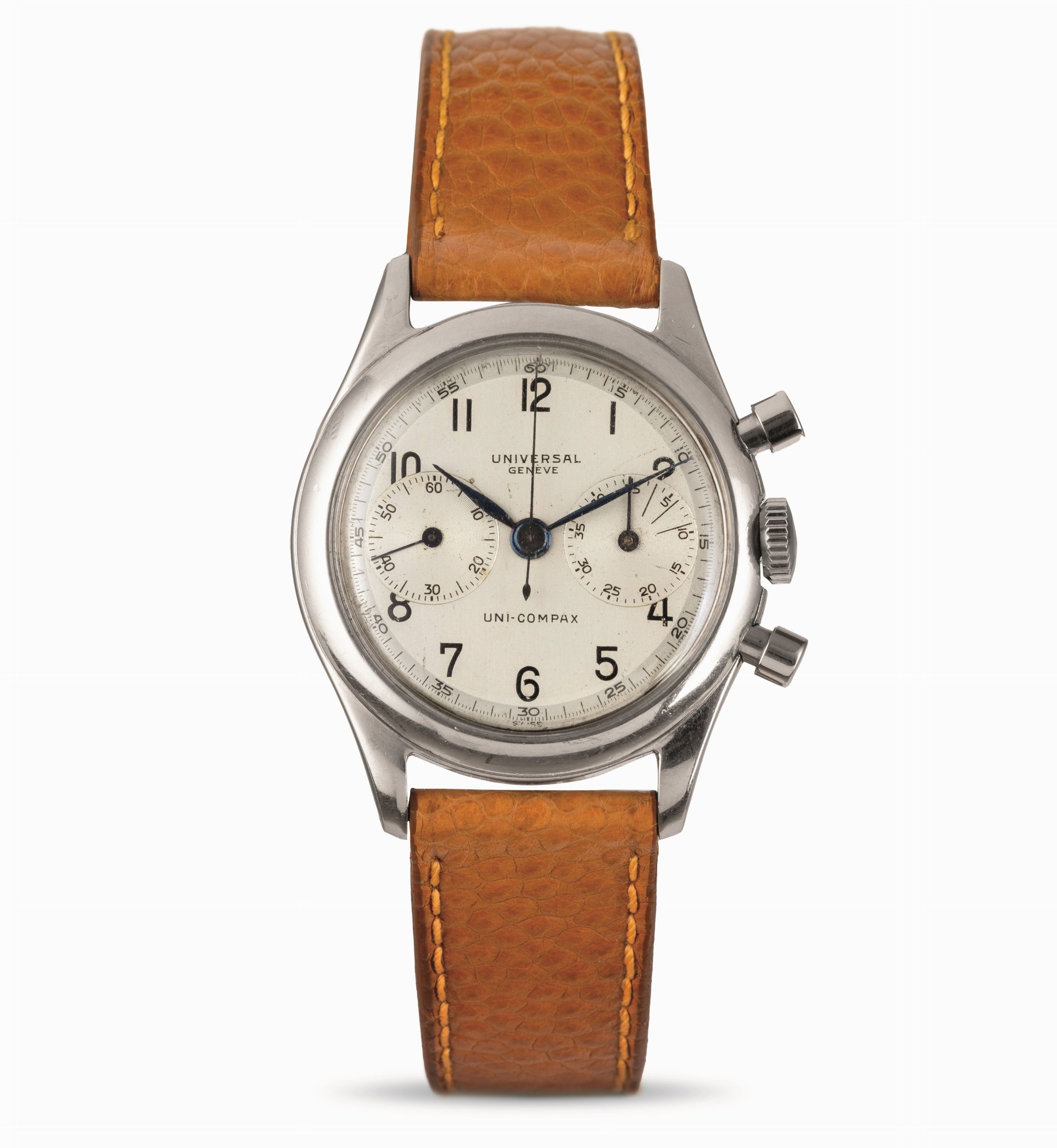 Uni-Compax ref 22292 in acciaio tasti a pompa fondello a vite, quadrante Argentè [..]