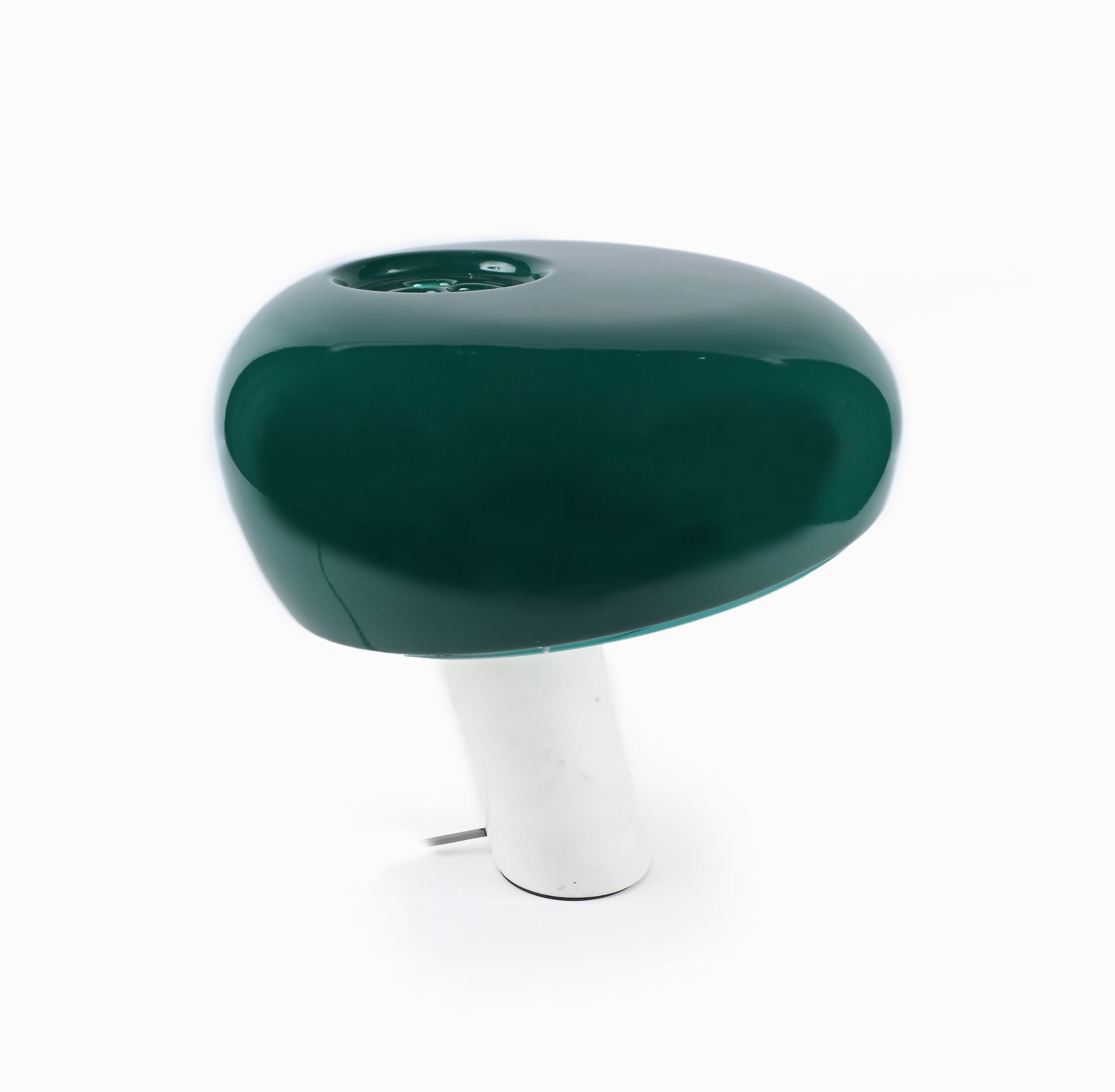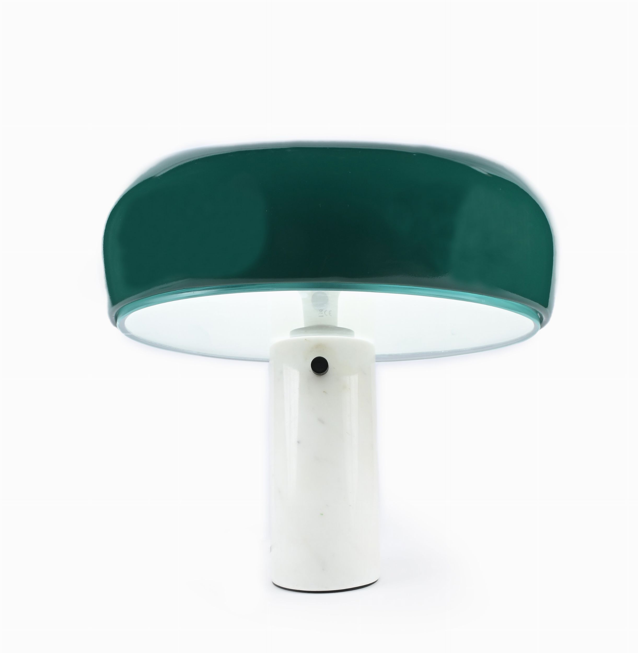 1967 Lampada da tavolo a luce diretta con riflettore in metallo verniciato e base in marmo di Carrara bianco; il nome deriva dalla sua fisionomia