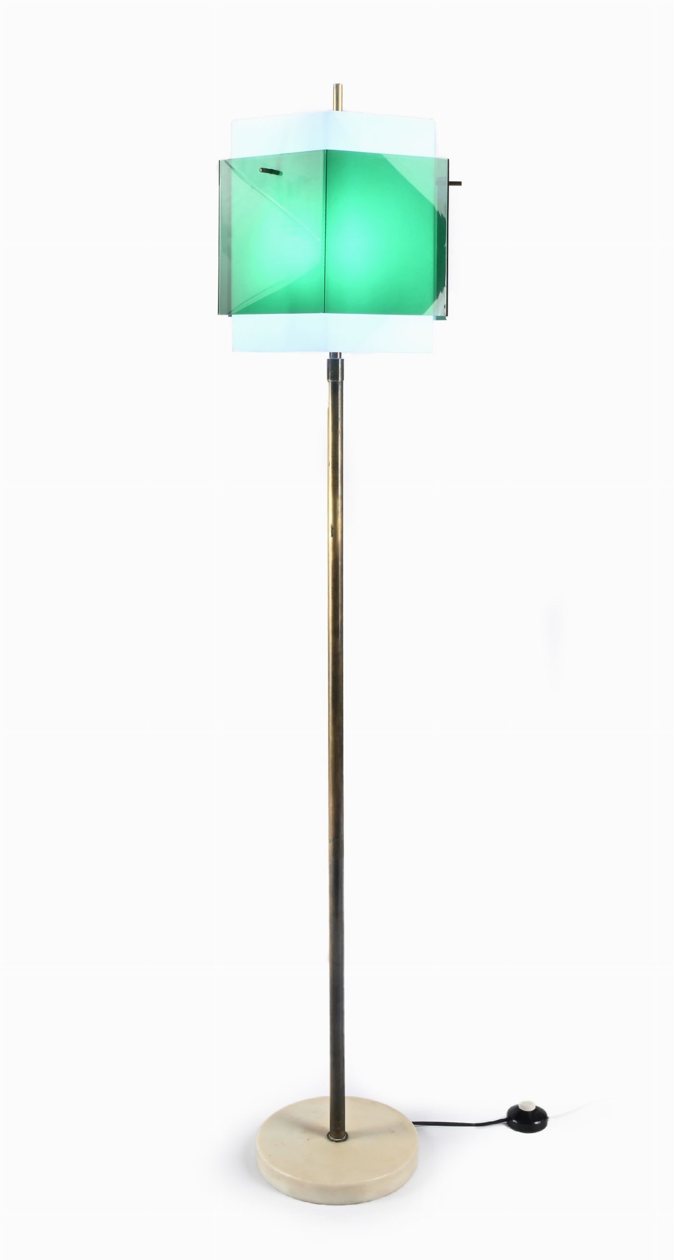 Struttura in ottone e paralume in plexiglass. Marchio del produttore Stilnovo