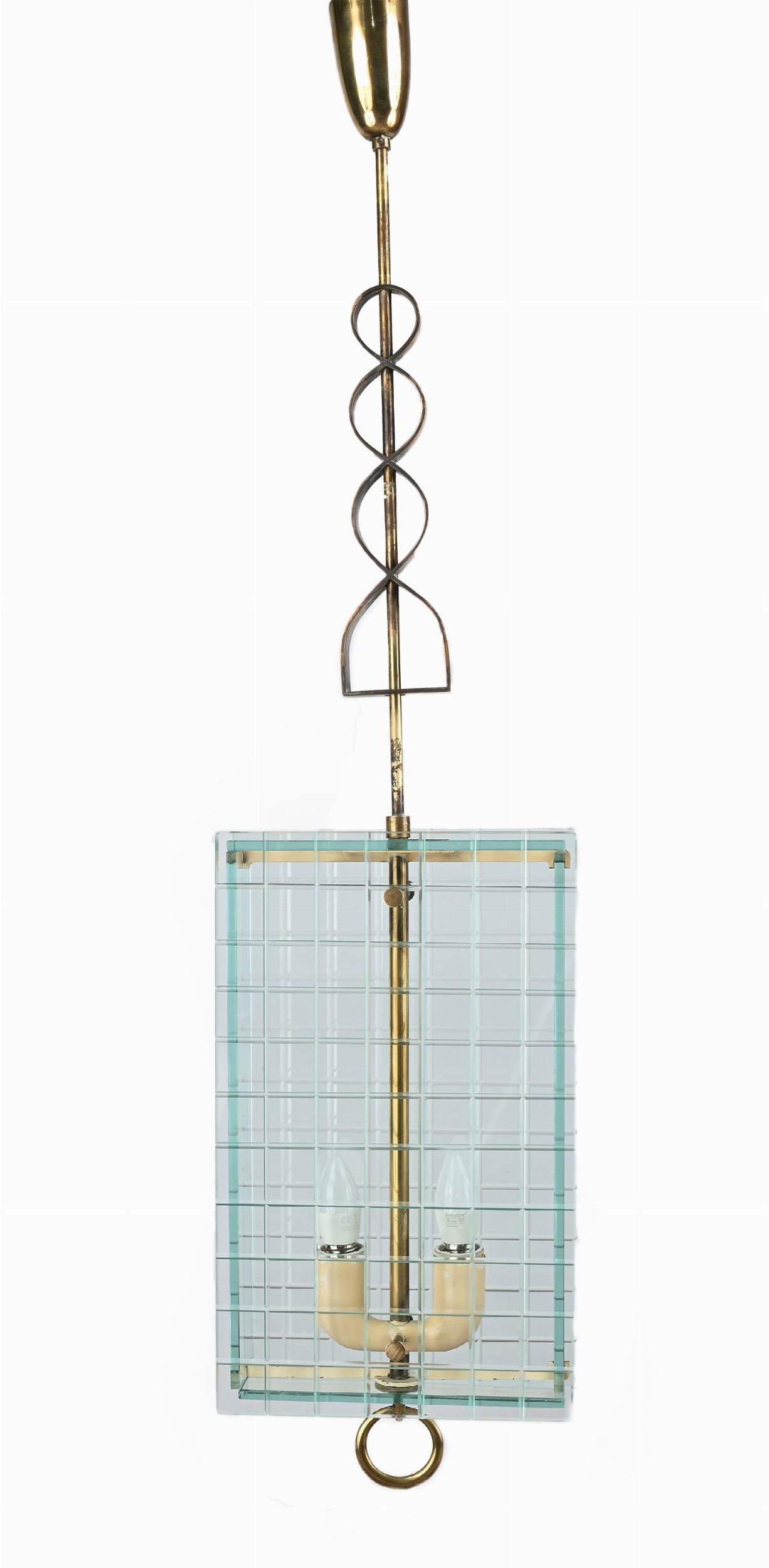 Lampadario a sospensione in vetro e ottone