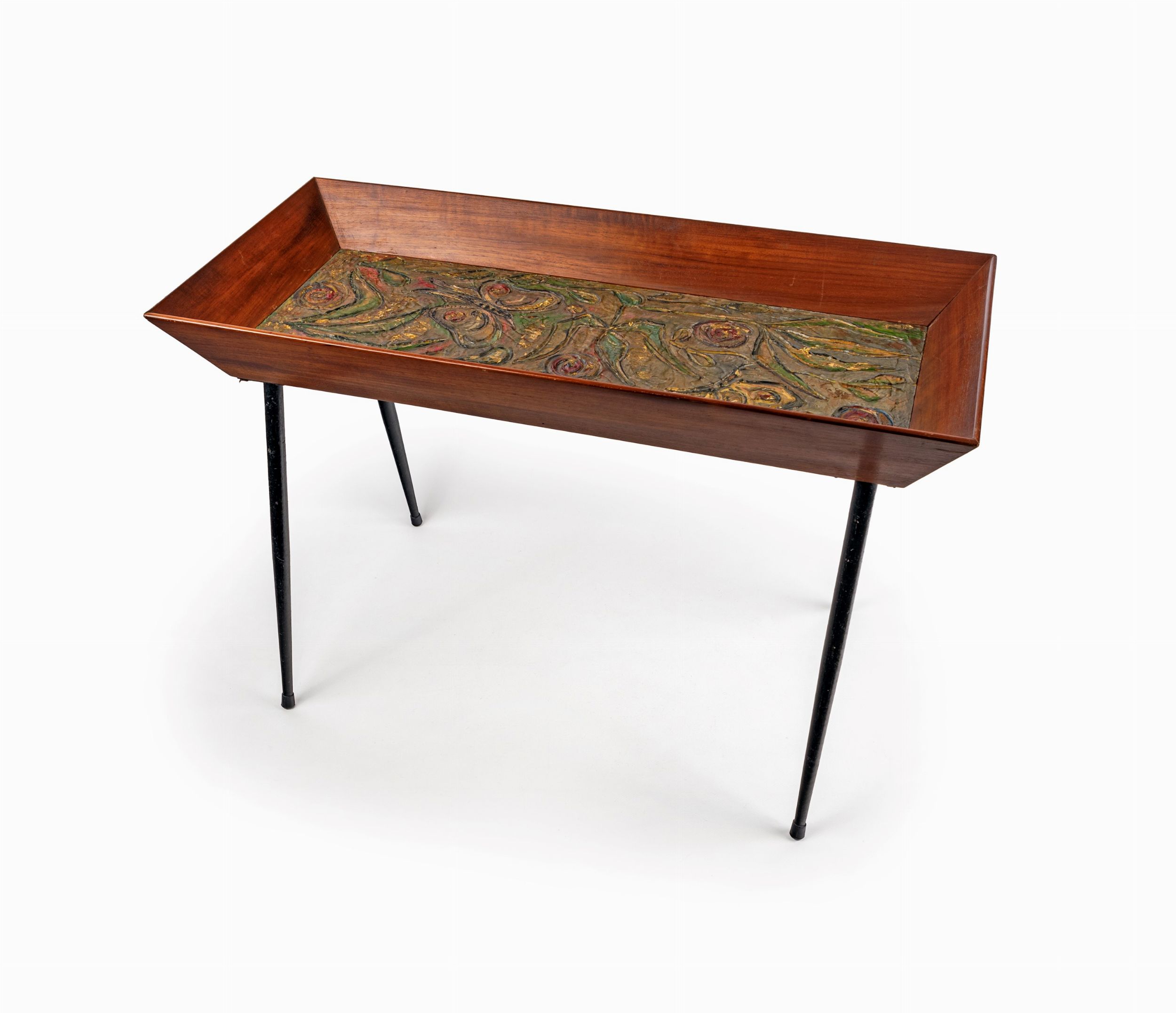 Anni '50 piano dipinto a motivi naturali e floreali ad olio e foglia oro