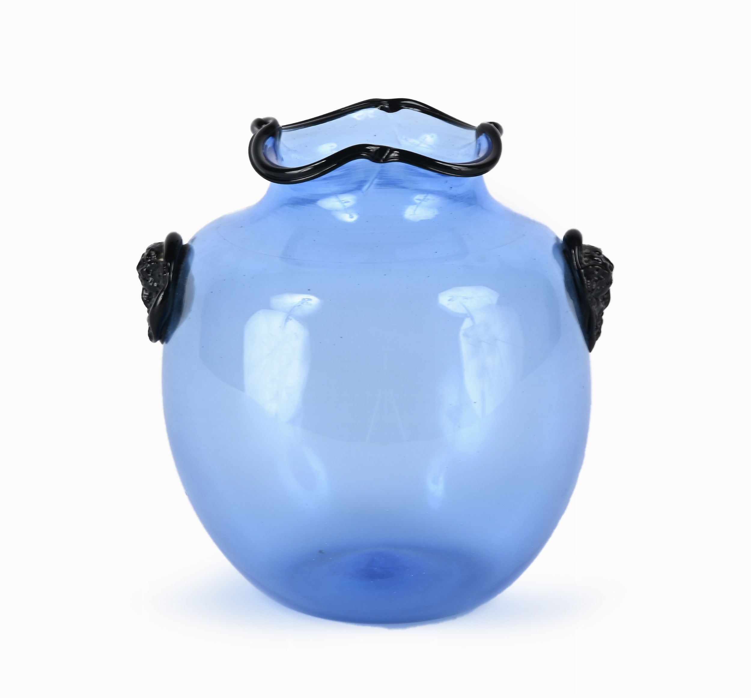 Vaso in vetro azzurro con applicazioni in pasta vitrea nera, Murano